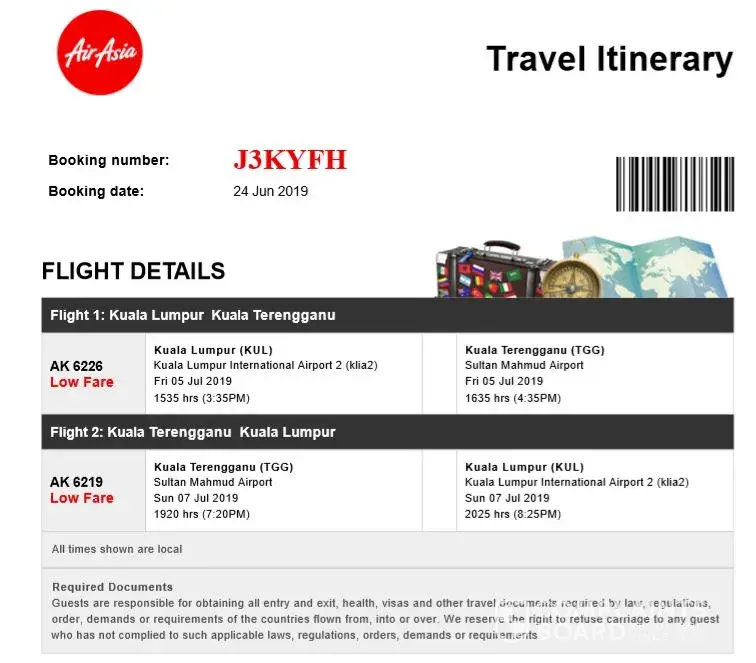 Flight Details: Kuala Terengganu to Kuala Lumpur
