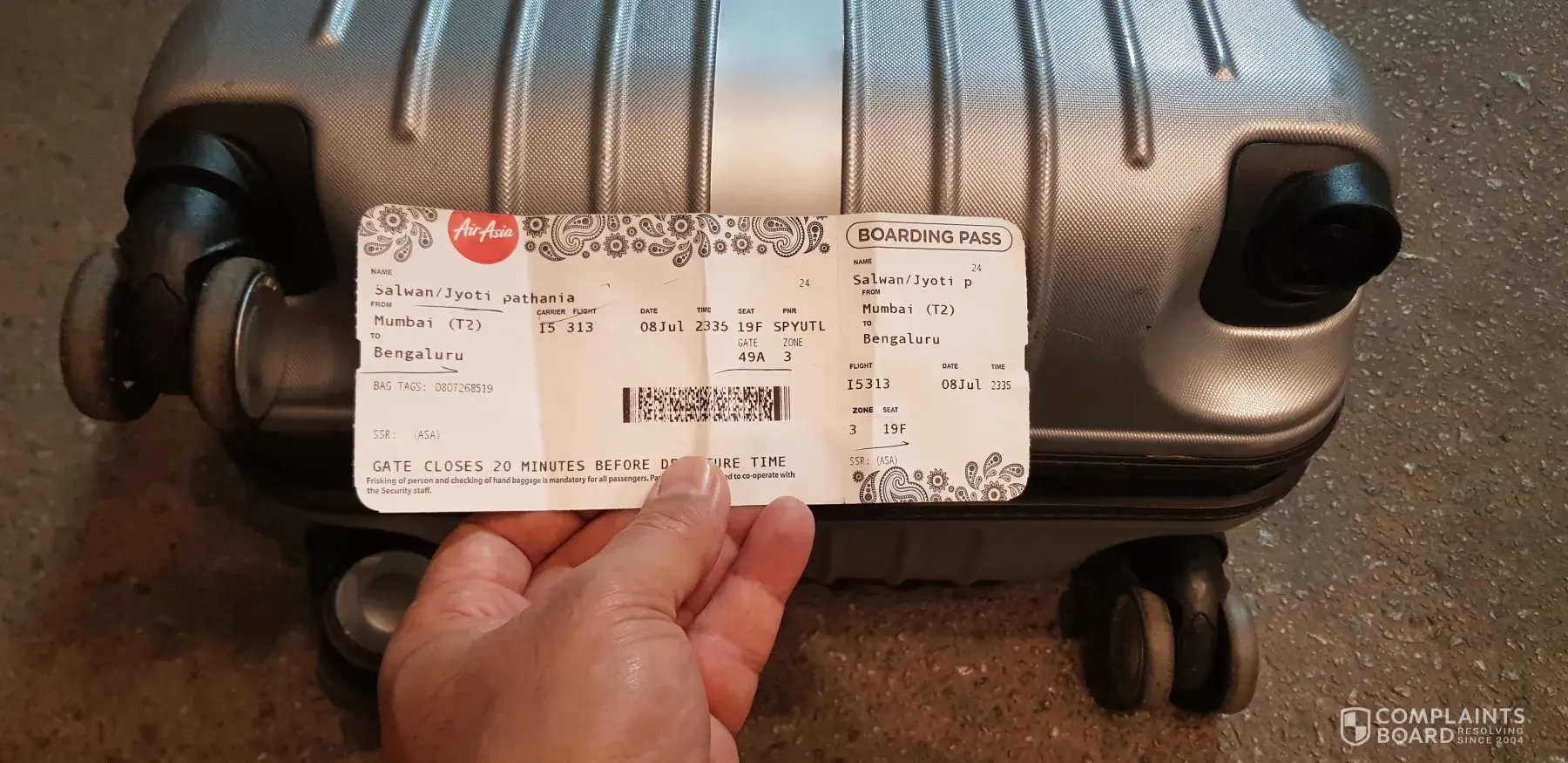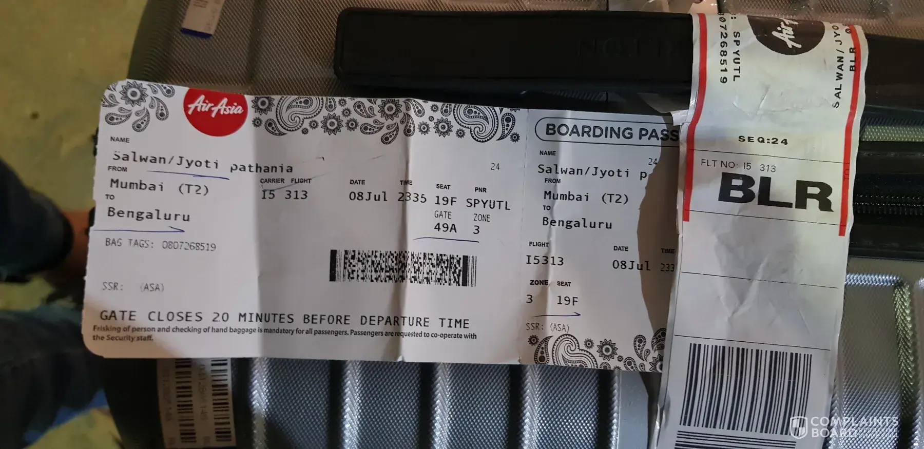 I and my wife traveled Air Asia flight I5 313 from Mumbai to Bangalore on PNR SPYUTL on the night of 8th July 2335hrs take off and landing 9th July at 0130hrs.