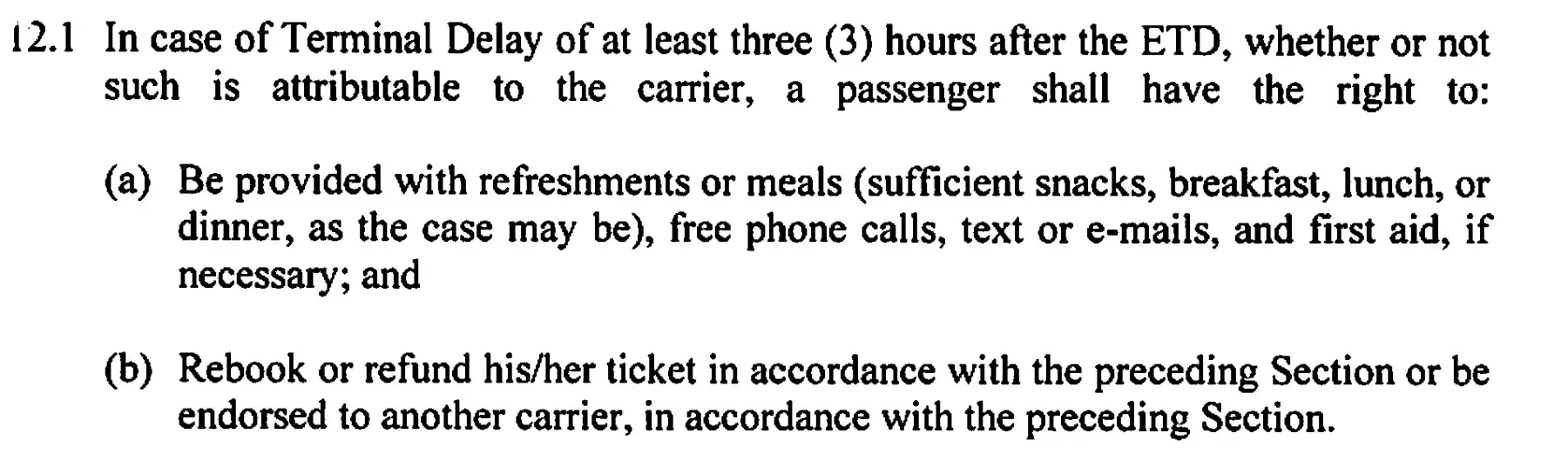 AirAsia is denying a delay of over 3 hours from original scheduled departure time and is not applying the legal text of the Passenger bill of right art 12.1 from the department of transportation Philippines.
