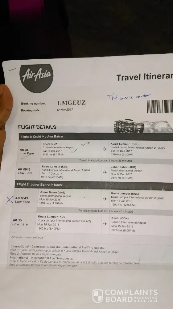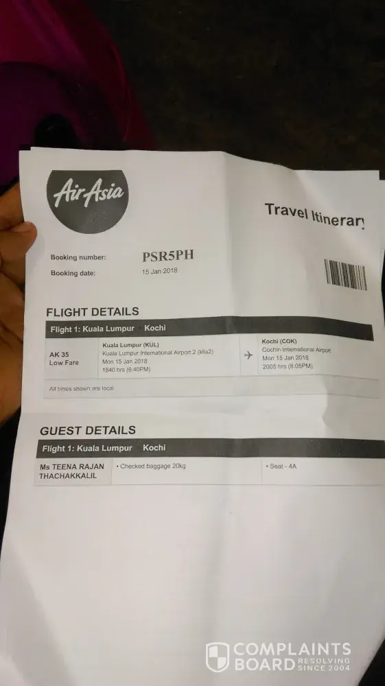 My booking reference for the hotel and flight was BPMF5X Itinerary # [protected]. Flight Airasia 522 departing KUL 14:35 24 December