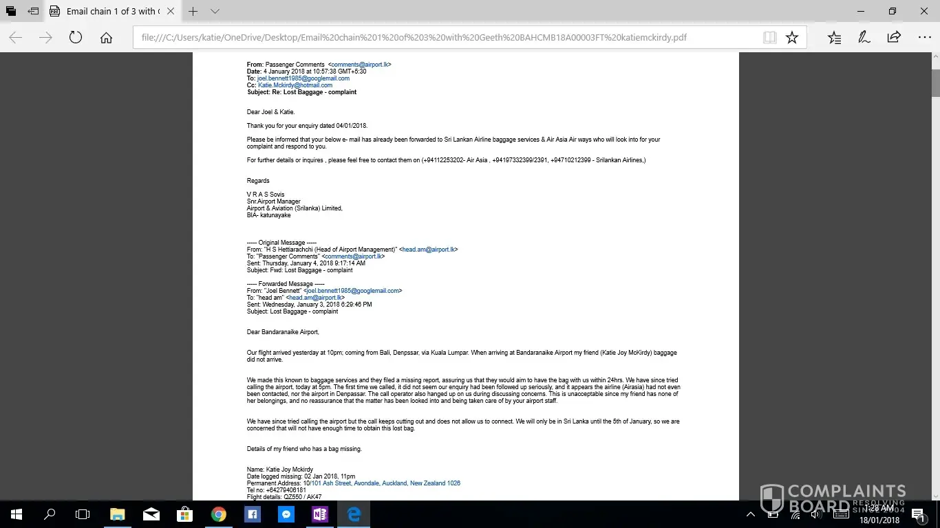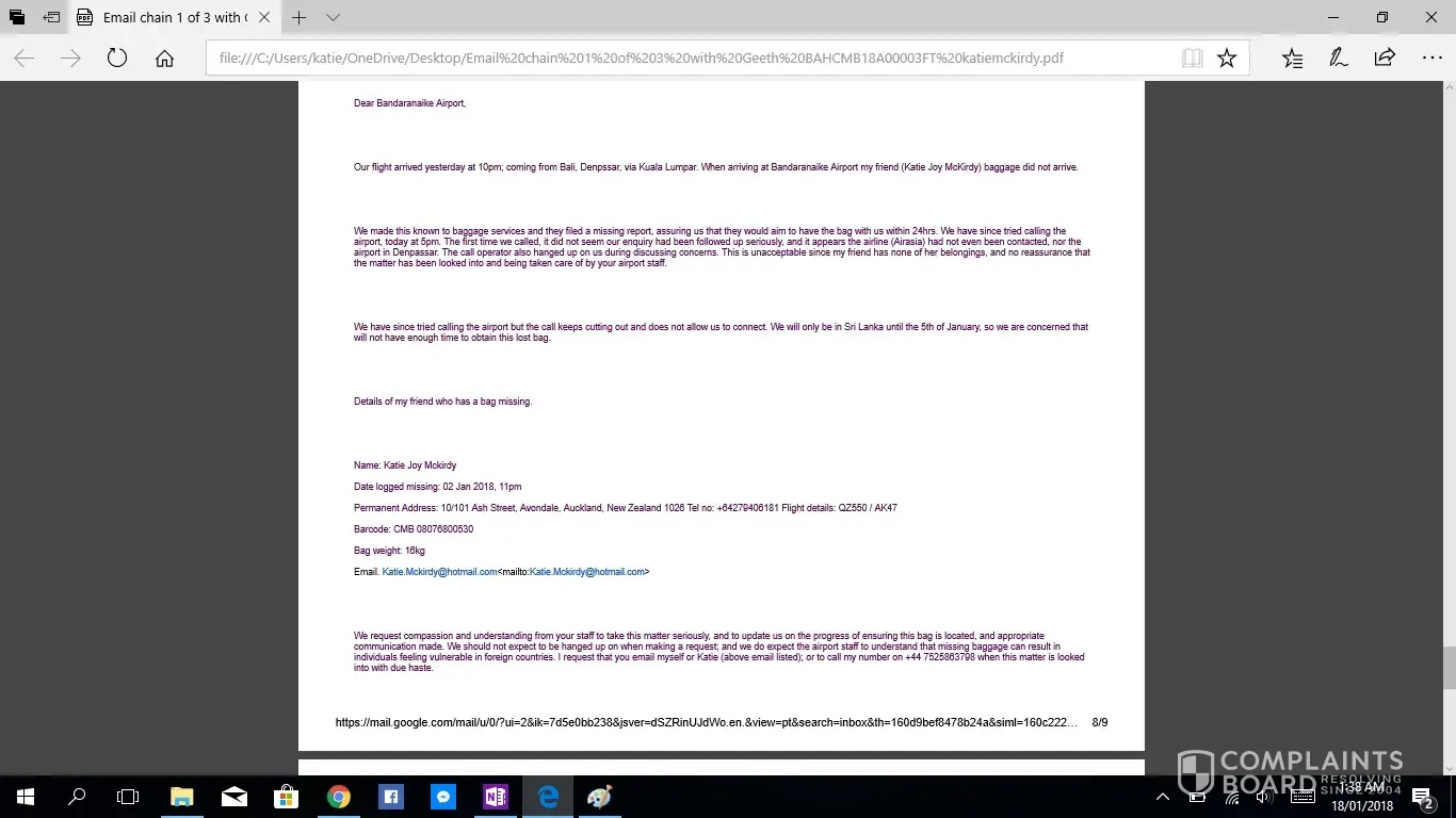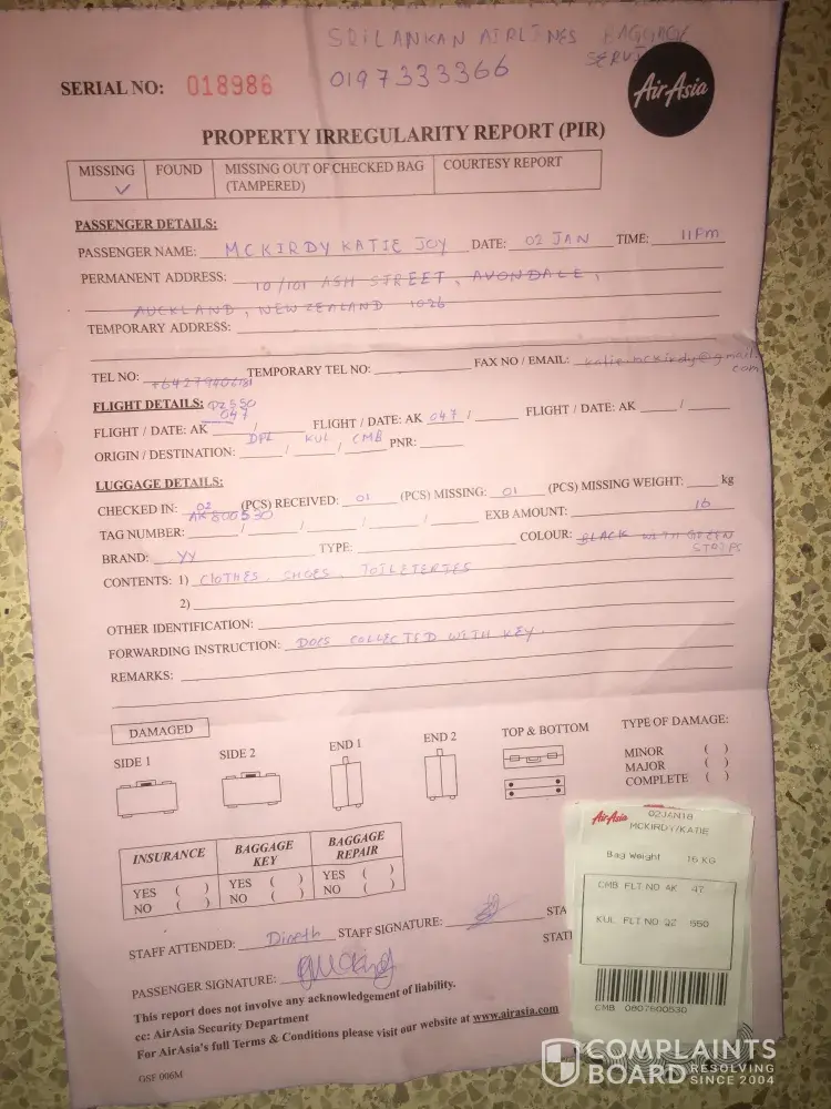 -AirAsia lack of contact and false information via email