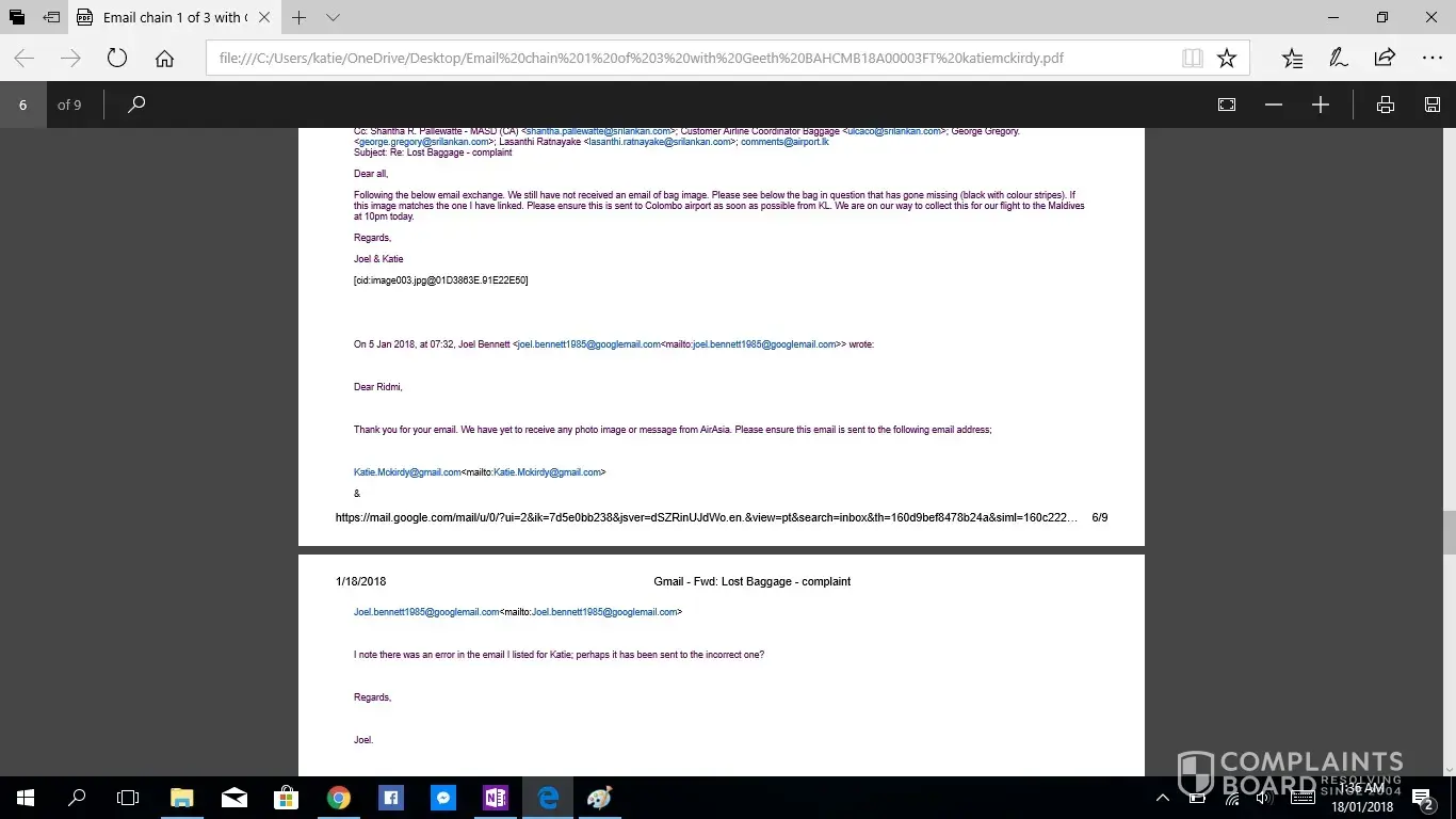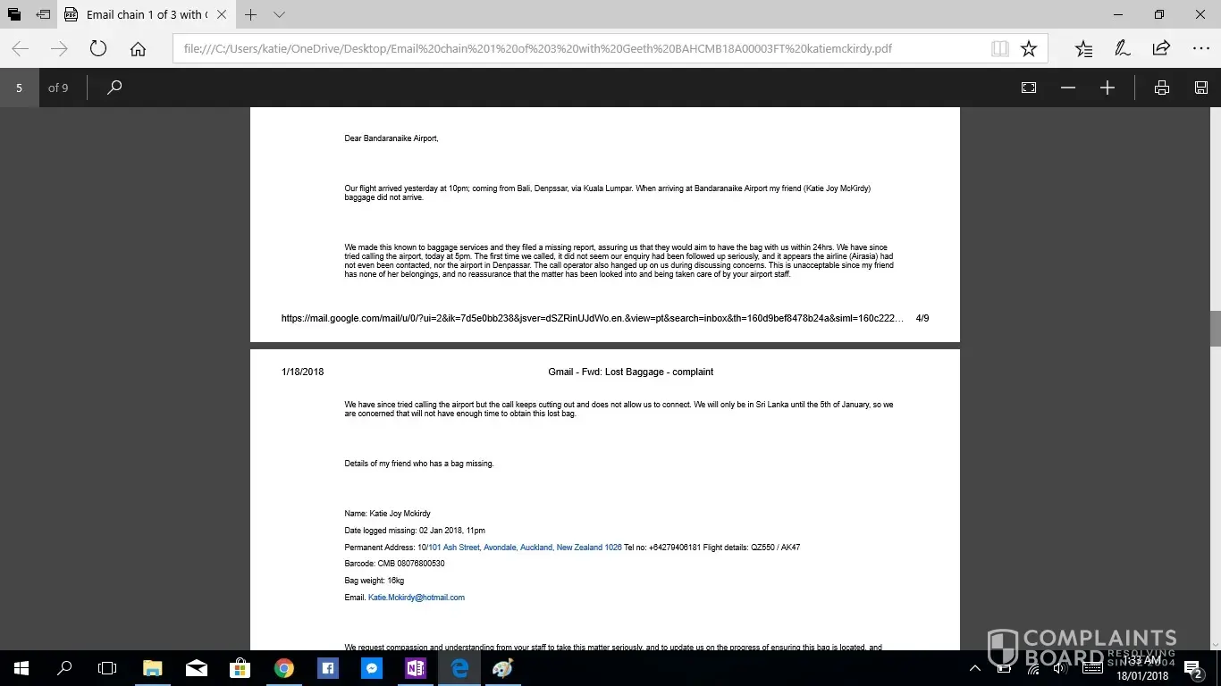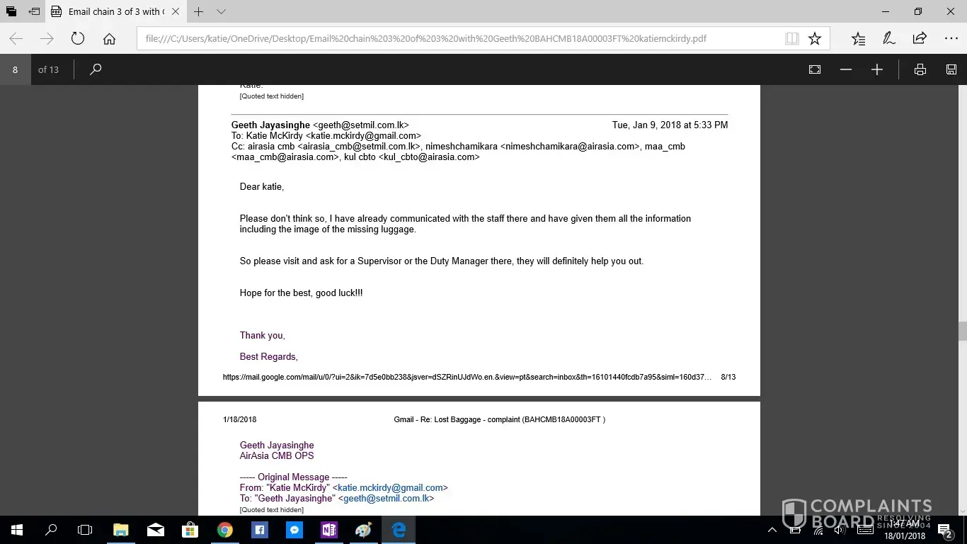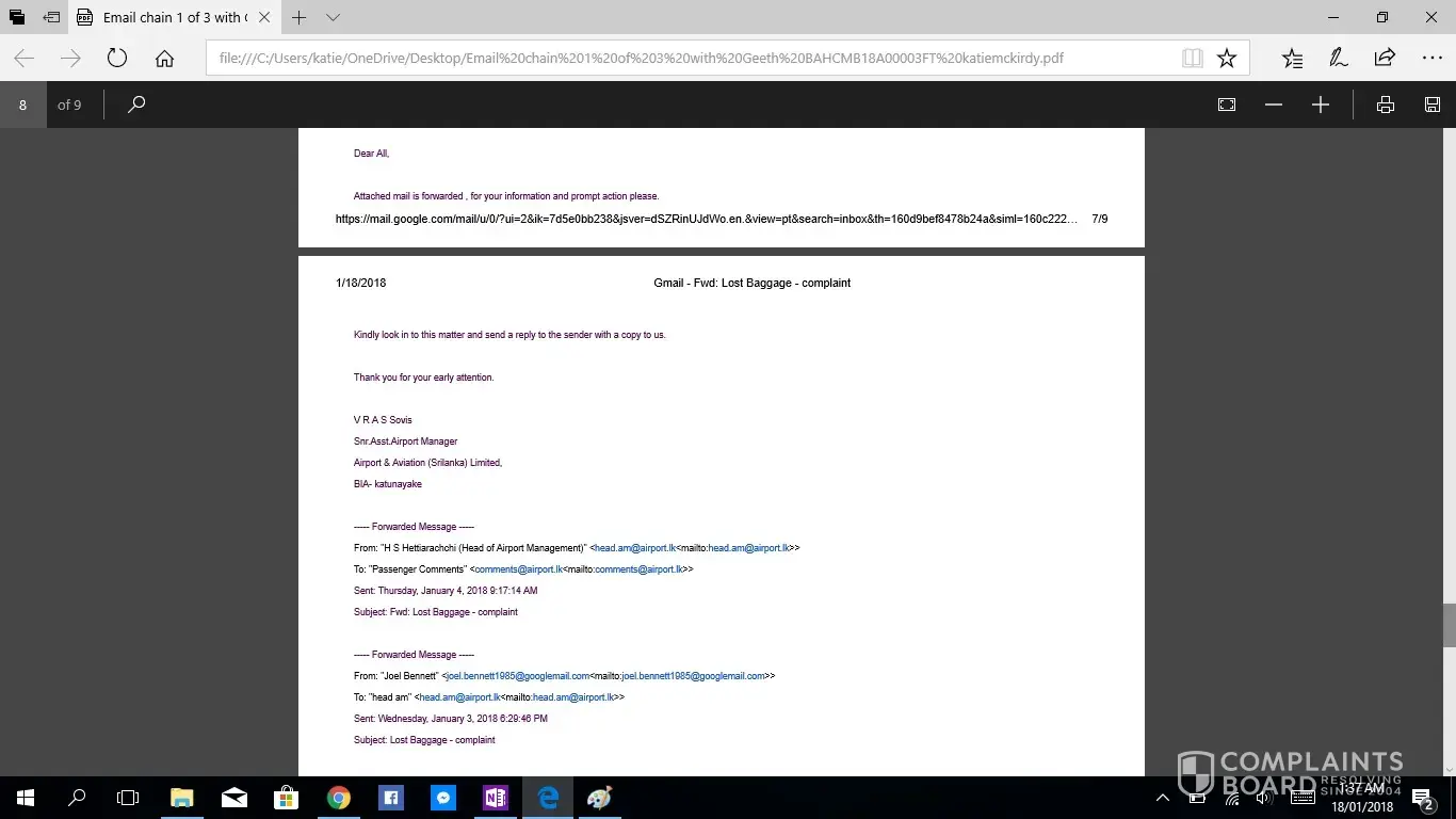This is the second complaint i have registered, as the first was not acknowledged. If this is not taken seriously or with due haste i will be taking this to the small claims tribunal. I have been contacting Geeth at [protected]@setmail.lk complaint number BAHCMB18A00003FT, i requested repeatedly to be updated daily regarding my baggage search, however this was not done. There for i have had to contact Geeth repeatedly myself, due to lack of information in his emails stating replies such as "sorry for the delay" and "i will get back to you", he had not answered any of my queries, nor get back to me with any information. I would like you to acknowledge the serious impact of this baggage loss, I work as an artist and was relocating from NZ to AUS after my month travels, everything i own is in that bag. I have now lost all of the supplies for my career and been set back considerably. The cost of the items in this luggage far exceeded $4000 NZD. Secondly i was left travelling predominantly Muslim countries with no clothing including underwear and proper coverage. No compassion was given. No understanding was given. I was left feeling very vulerable without any support from your staff until i had to chase for a response. Due to staff saying my baggage would arrive soon i did not buy any other clothing for 12 days then had to out of necessity of travelling to a country in minus degrees.