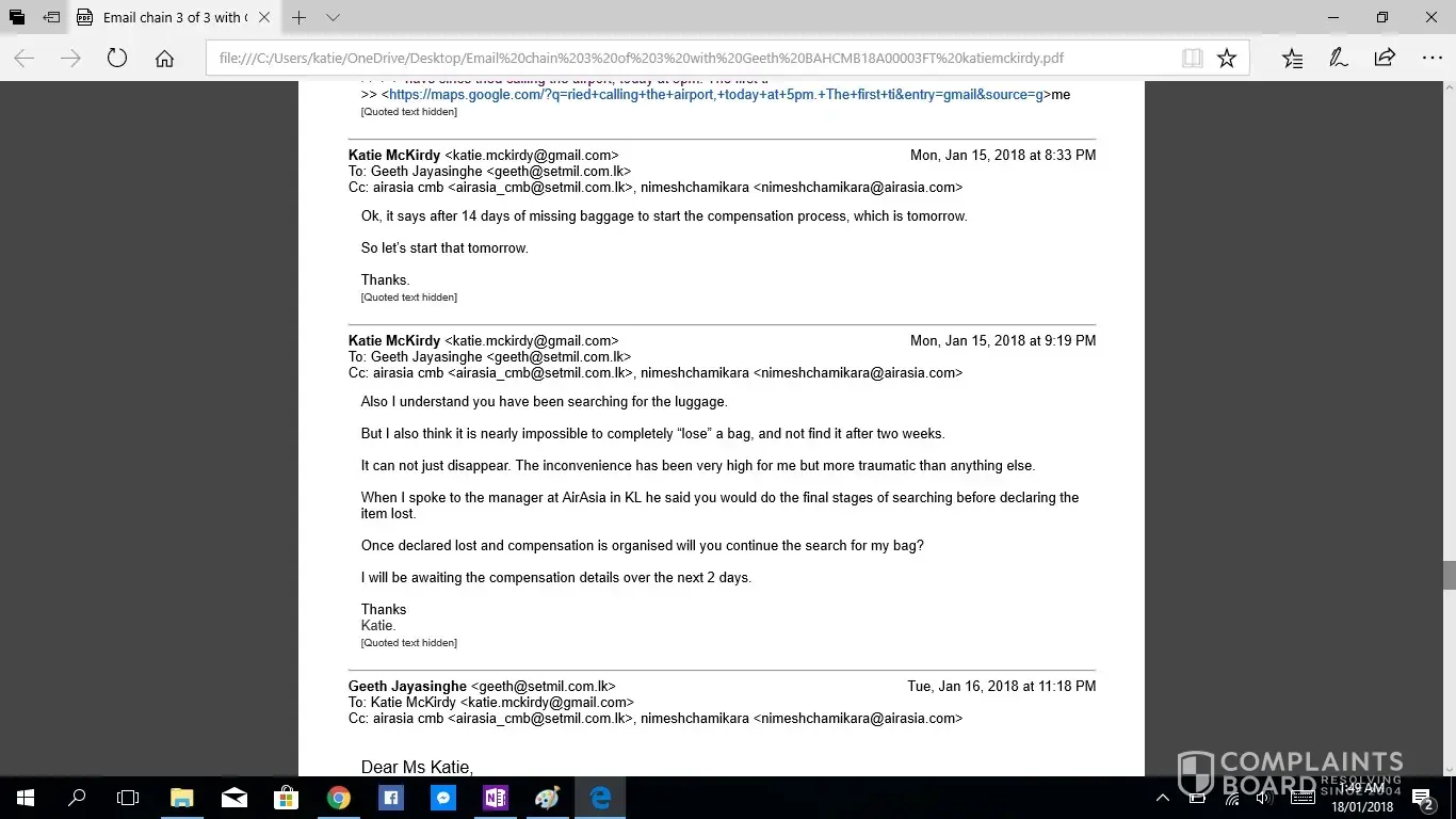 It has now been 15 days, after 14 days the luggage is considered missing and i am eligible for the compensation of $20USD per KG. I requested this to Geeth and he has said to give him more time, which is not acceptable or correct.