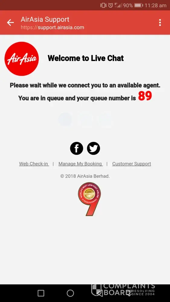 I have been contacting air asia online chat many times and waiting them to pick my line from waiting number 99-50..always after 50 my line will disconnect and have to wait again from 90 but still no one will pick my line. This already happen around 5 times. Different days and timing I'm trying.