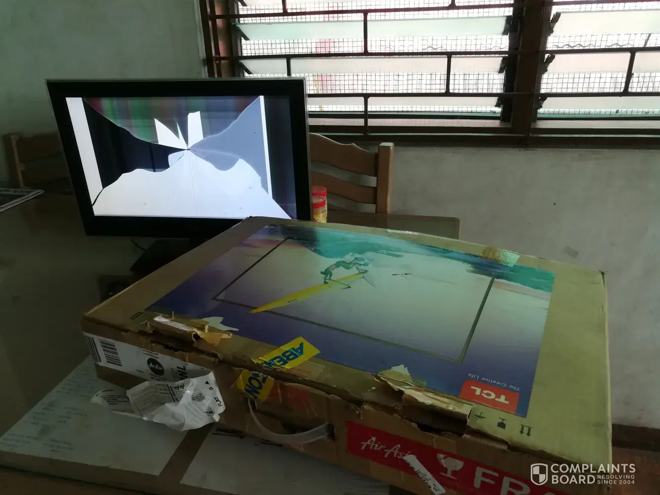 Upon arrival at the airport, I did not noticed anything wrong with the monitor's box so I assumed that there was no damage whatsoever, only until I opened it earlier this day and turned the tv on that the lcd monitor was damaged, as if a luggage or a heavy thing had fallen right at the middle of the screen. Attached below are pictures as proof of my complaint. I hope you take action on this as soon as possible.