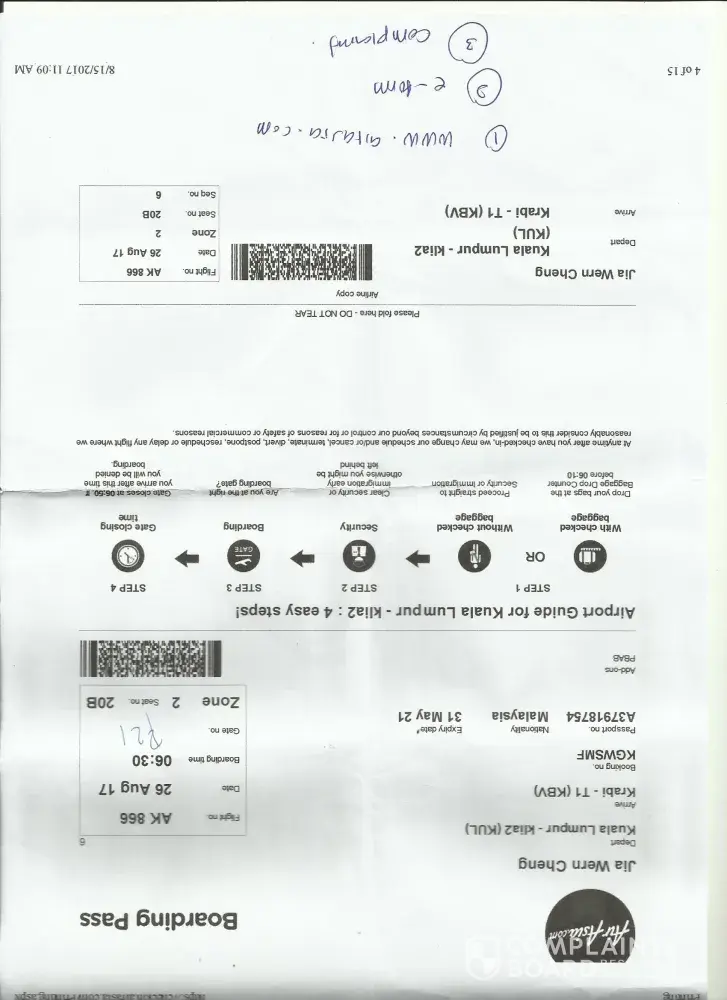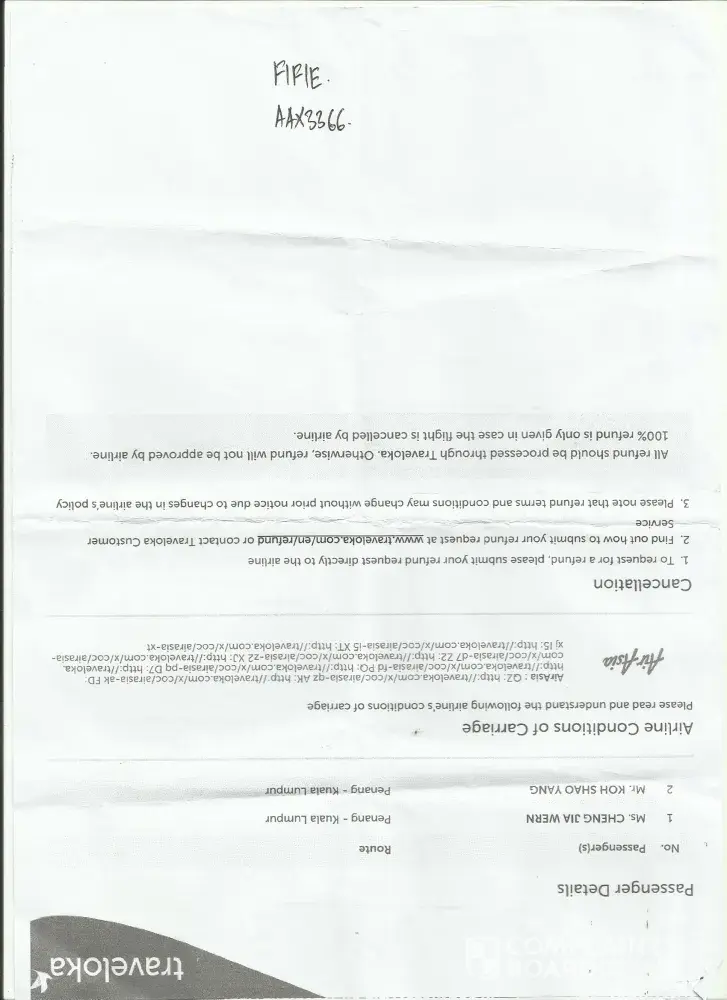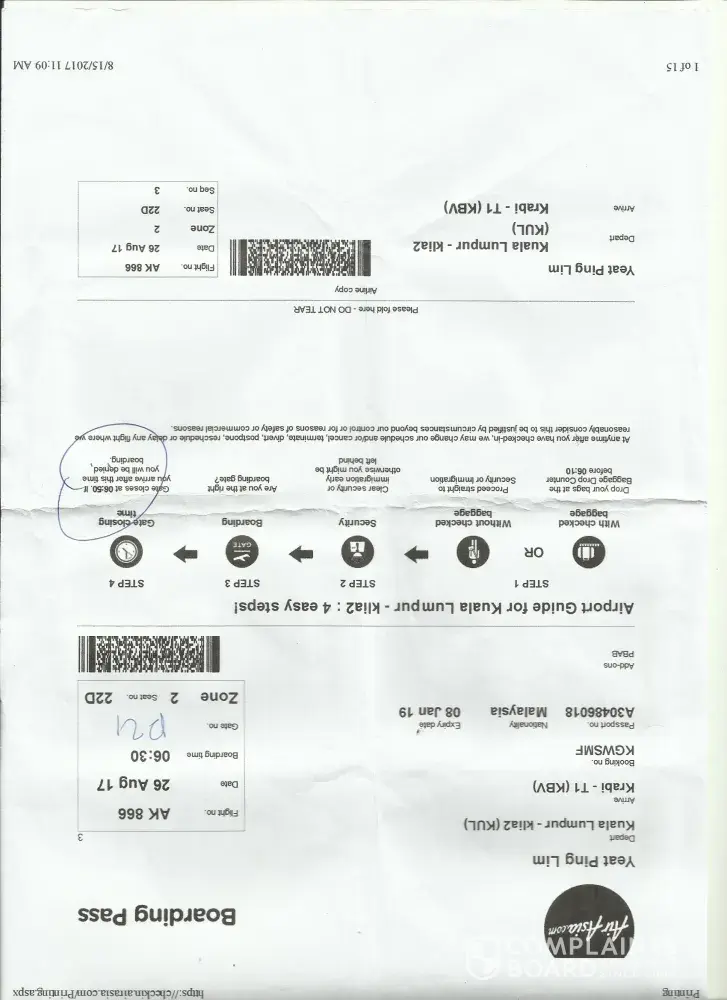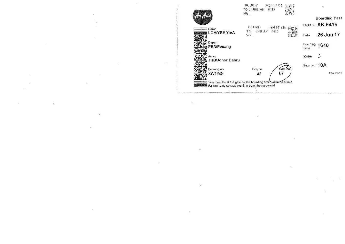 Attached herewith the report I lodged with the Johor Air Asia Officer with the flight ticket.
