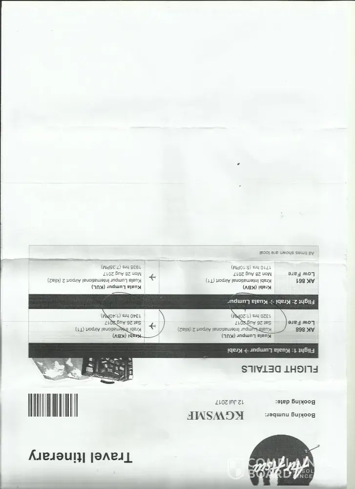 Hi. I am Jimmy. I on board Airasia from Penang to Kuching on 1 Sept 2017.