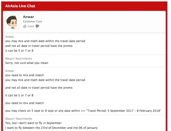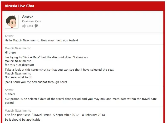 Last 2 updates from Air Asia was 29 Dec 2016 (Case Acknowledgement - CAS-[protected]-H3WS96 CRM:0001869)