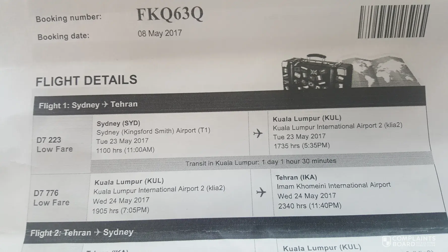When I came from sydney to kuala lumpour flight seat by half an hour delay ...second one from sydney gave me departure card that mention I have to go P4 ...between 6 that I arrived to kuala lumpour and 6.25 boarding time ...just a few minutes...as u know kuala lumpour has long distances...then I was waiting in P4 ...then they told me this FLIGHT IS IN P6...CUSTOMER SERVICE GRAB MY FLIGHT CARD LAST NIGHT ...AND DID NOT BACK TO ME!THEY R SO SMART AND I FORGET TO TAKE PHOTO ...they provided me accomodation for a day and flight is next day ...in Tehran in this way I miss my next flight because of this airline..I have necessary medical surgery so I miss it...who want to make up my damages?I sent u my new ticket that waste my time 1 day and I was really in bad feeling as long distance in airport that once I have to go look for my luggage then back to customer service to get new ticket ...it was horrible ...please respond to my complain as I spend too much money for my next flight and my medical .