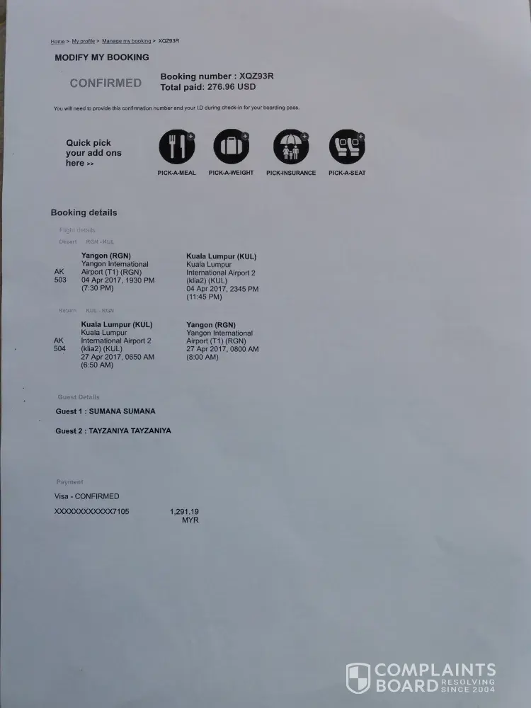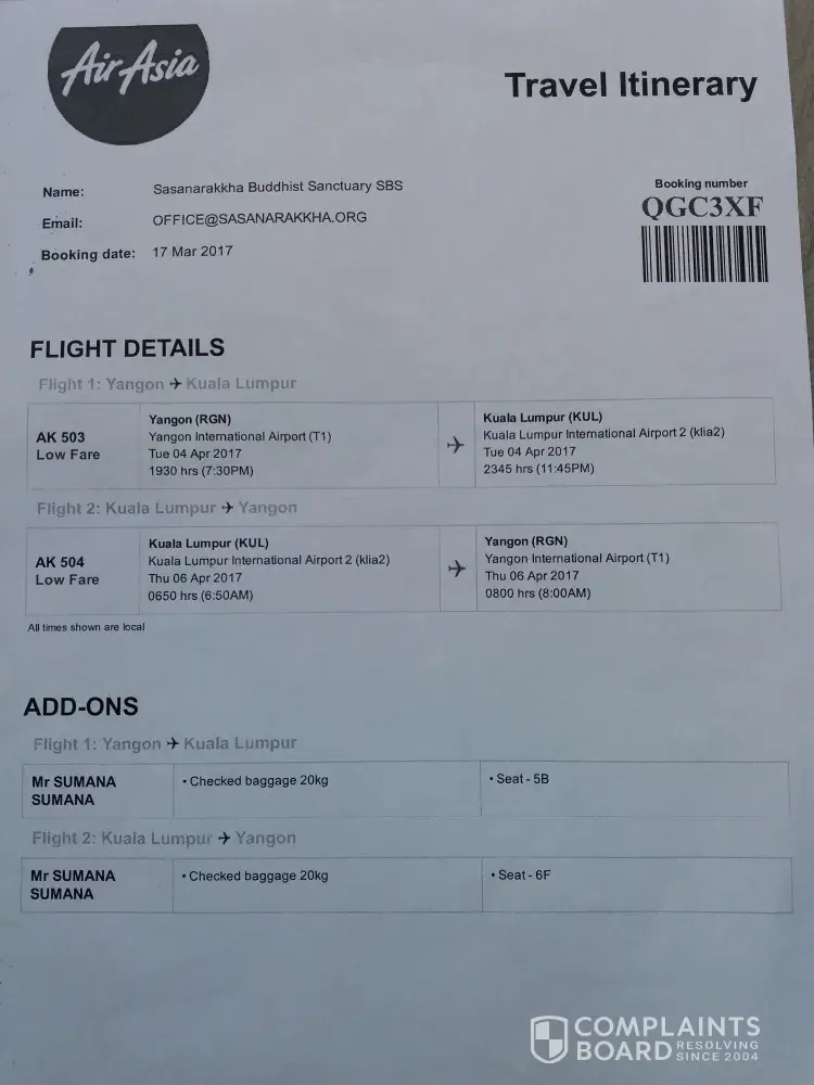 TIMS had bought his return ticket for 27 April 2017 (Flight AK504) departing KLIA2 at 6:50AM.