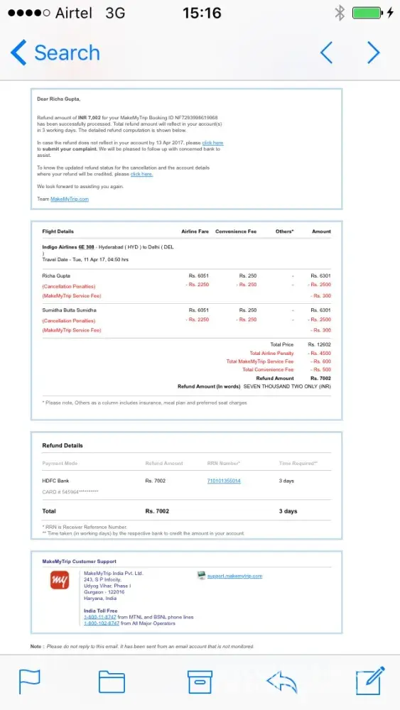 Please refer to the attached printouts of mails received from Air Asia that verify the above mentioned.