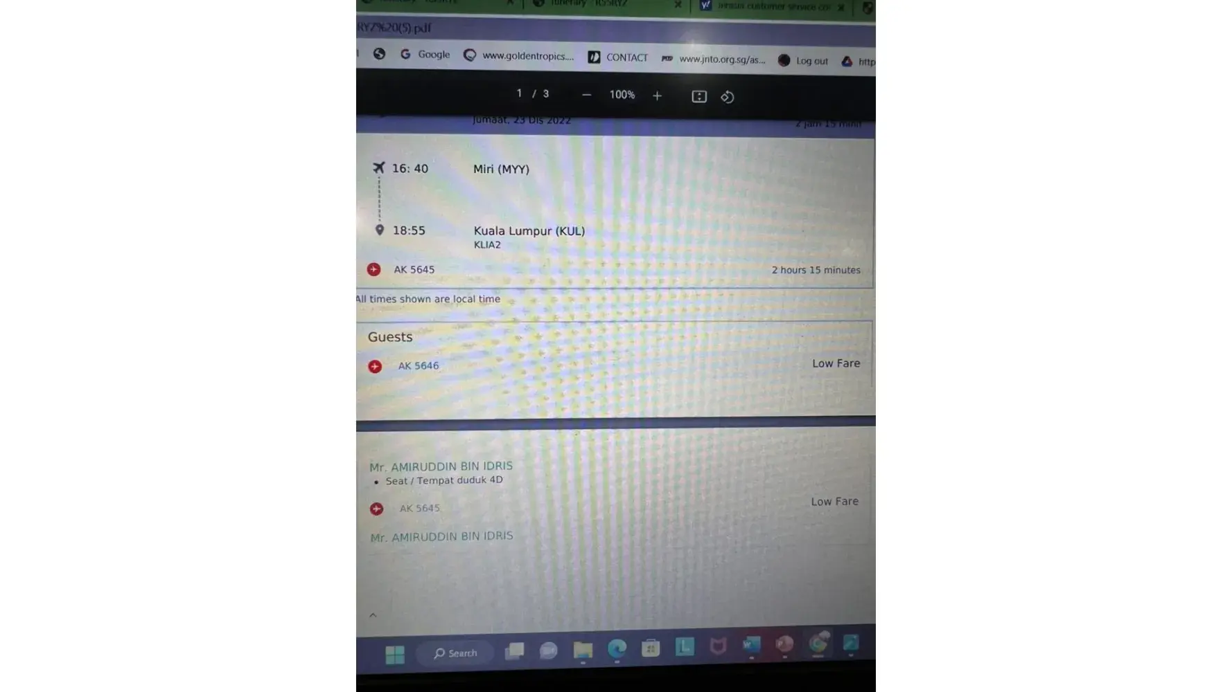 Referred to checkin counter n0. 14 at Miri Airport at 2.35pm