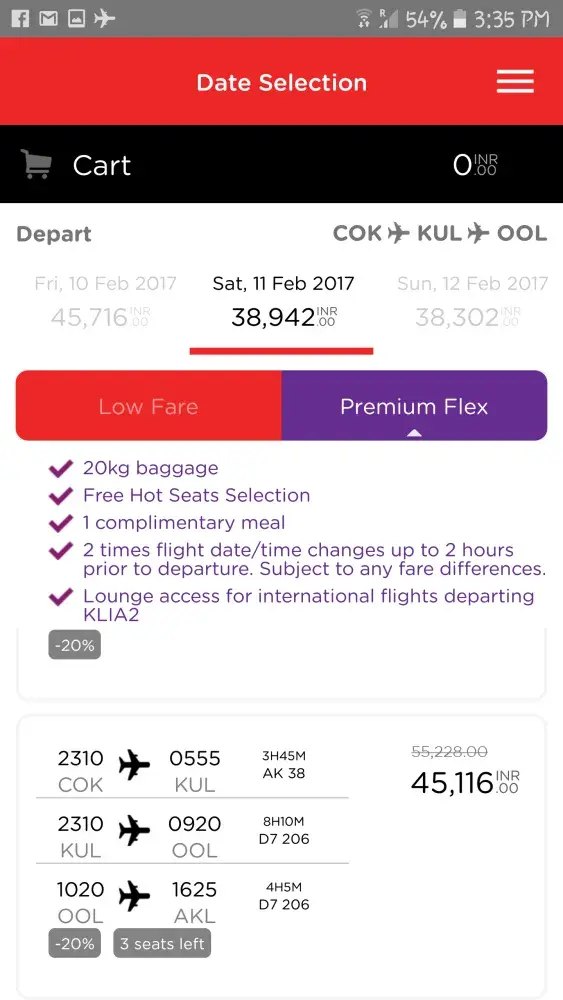 I checked the fare again at 3.35pm on 10/02/17 and it was INR 45116. I have taken a screen shot of the same and will attach with this complaint.