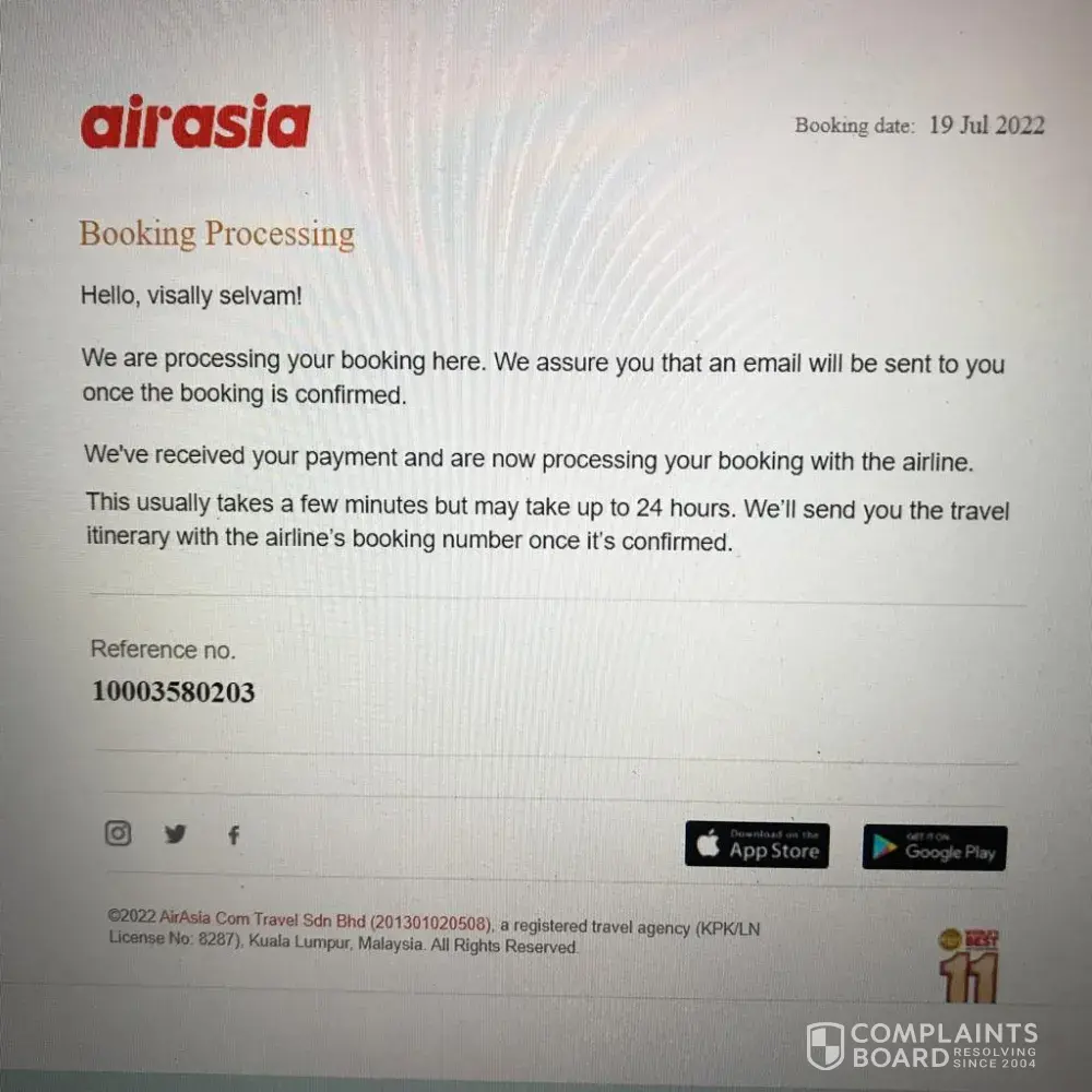 Desired outcome: As a well know company AirAsia shall look into this matter very seriously to help its valuable customers.