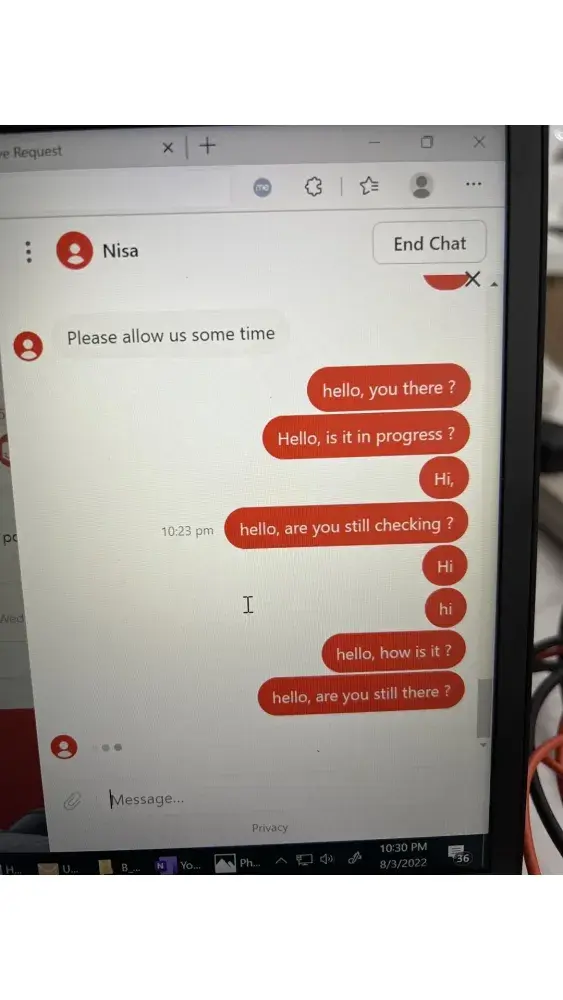 The 4th agent was telling me that she needs to check with supervisor on the case, then never came back to the chat, left me there, and then just left without any answer.