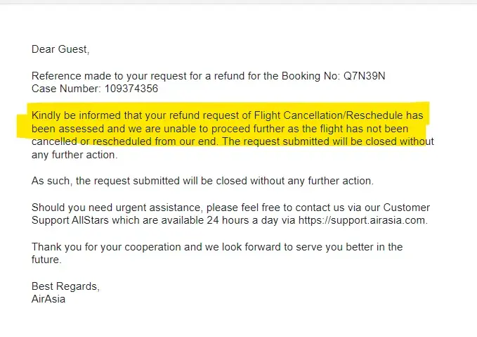 Should you need urgent assistance, please feel free to contact us via our Customer Support AllStars which are available 24 hours a day via https://support.airasia.com.