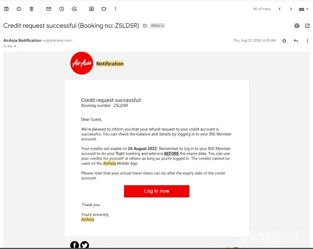 I also received email on 23JUL2021 from airasia informed that my credit account is now automatically extended to 36months.