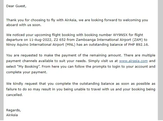 I did booked a flight but did not confirmed my payment after 10 minutes, so obviously that booking is automatically cancelled online ( WY9NSX ) Aug 11, 2022. My credit account should be Php 6,934.00 , coz I did not made any payment confirmation on WY9NSX booking. My email: [protected]@GMAIL.COM and my Big I.D member [protected]...(JERRY ANTONIO GANHINHIN JAICTEN)