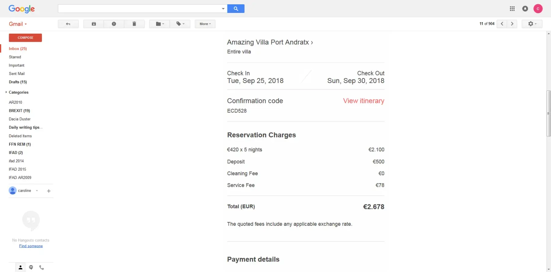 Below is the payment details.