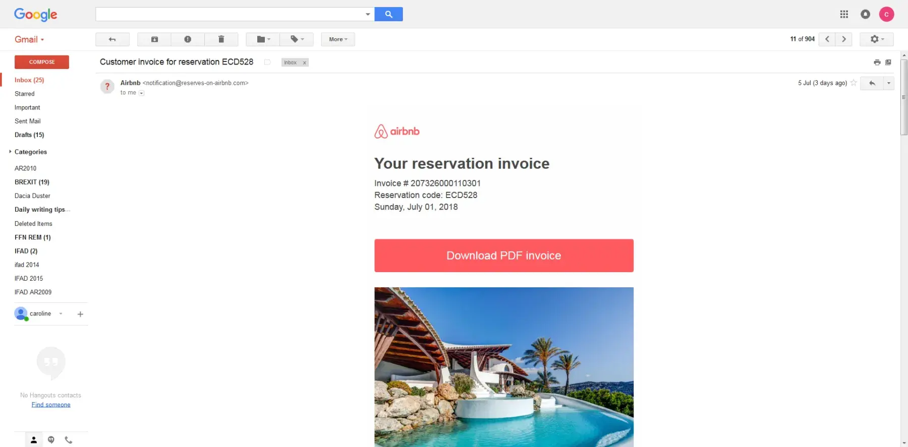 I had a really bad experience with Airbnb. On 2 July I went on their official website and found a villa in Majorca. I opened up the post and was able to see all the photos, reviews, etc. I then checked the red 'email host' button on their site and wrote to the host, who duly replied through what appeared to be the official Airbnb platform. After a couple of days of communicating via email, I was sent the invoice which looked exactly like the Airbnb one. I paid it and thought all was sorted. Two days later, I received another invoice and this started to ring alarm bells. I contacted the Airbnb customer service and they said that they would get their Trust and Safety people to look into the case and offer assistance. I did hear from them within 24 hours, but assistance was definitely missing! I was told that if I'd paid outside of their secure platform by bank transfer, they would be unable to offer compensation. After further correspondence with them they have now said that this is their final decision for my case and that this will be their final email about it.