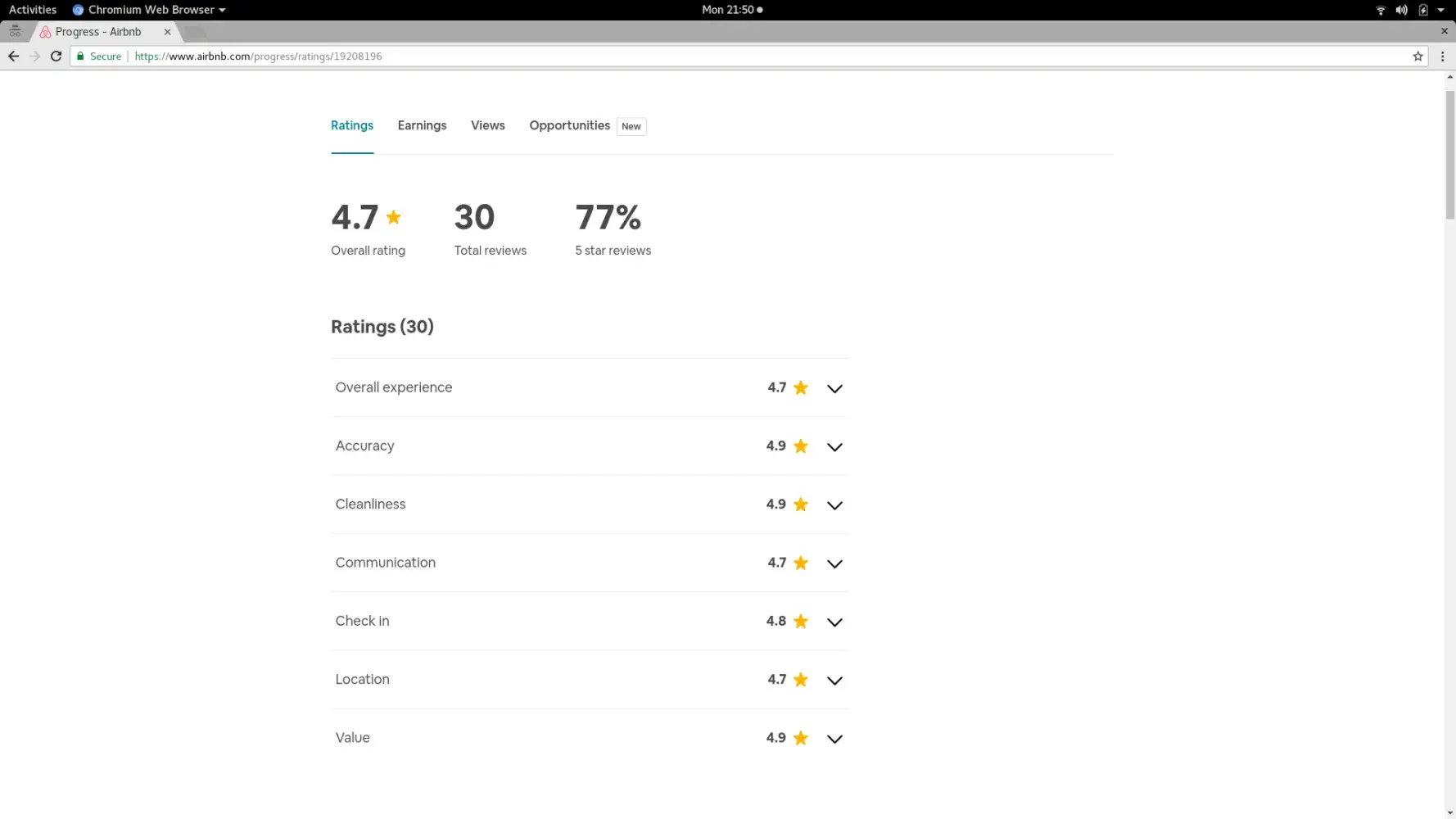 Airbnb shows incorrectly the overall rating of my listed property on the public profile of the listing. This affects how the listing appears and whether it gets priority viewings in searches.