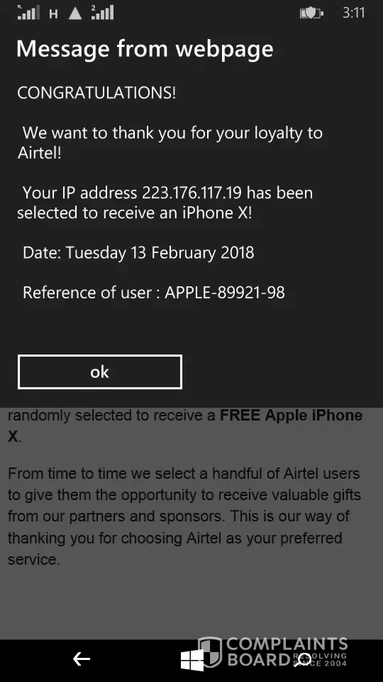I received a message about winning iPhone x . When I opened that page it said to submitt 1 dollar to get iPhone x