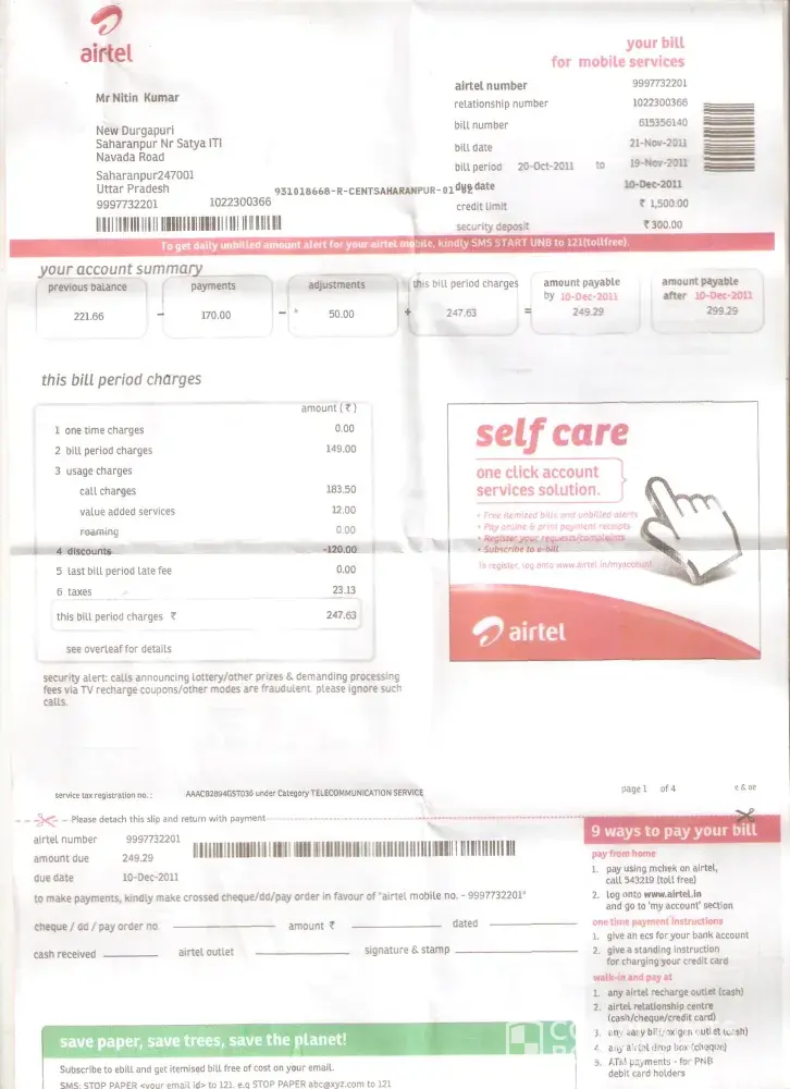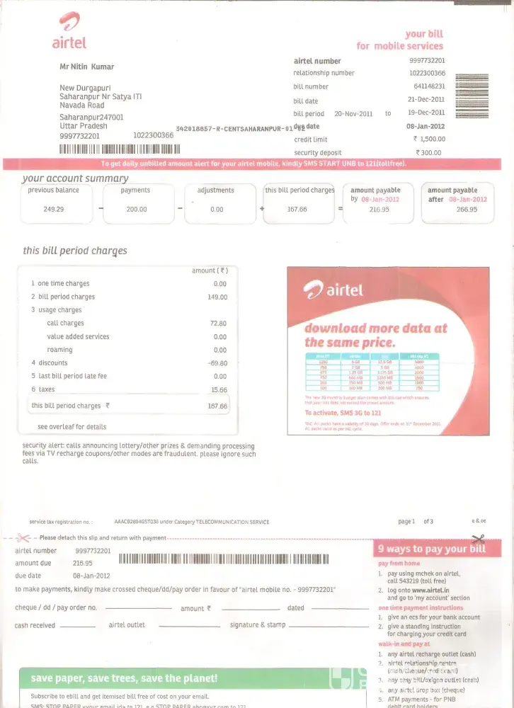 airtel pospaid bill