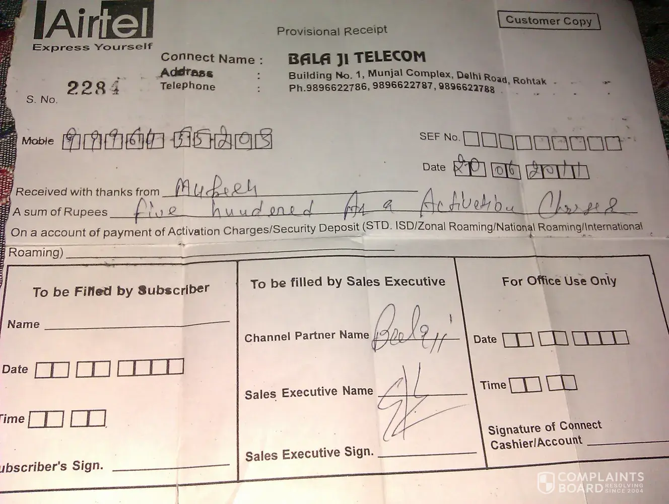 If this is not resolved then the options available for me is to log a case against AIRTEL in the consumer court and Change my service provider.