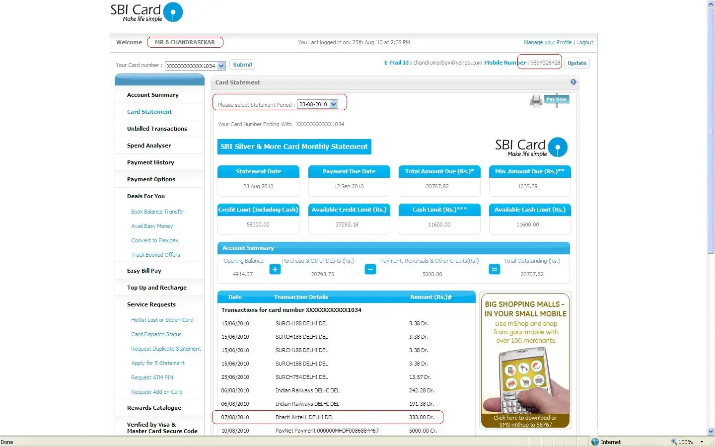 Please kindly look into this matter and recharge my Airtel prepaid account.