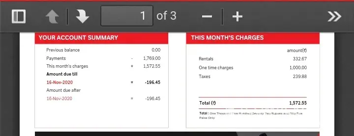 In 2nd month my bill is unusual and an extra Rs1000 for one time payment which I already paid and when I am trying to pay bill through Airtel app it cuts only Rs 100 did this 2 Times and my due than changes from -196.45to -396. 45