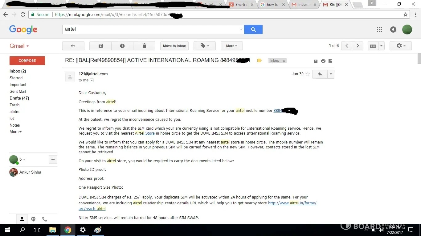 airtel — airtel fraud company, international roaming not activated for bihar and jharkhand circle
