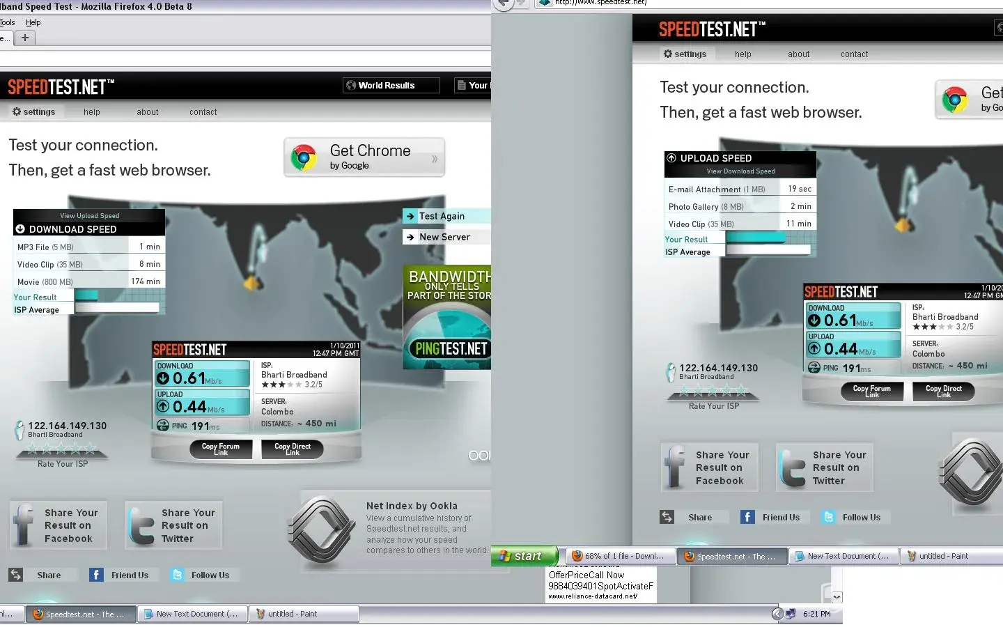 Hi this is keshav kumar from chennai from 4th jan 2011 onwards iam not getting proper speed .. before i get 1 mbps only but i call to customer care and ask about my plan they said u get 2 mbps from august onwards 2010 but upto now i didnt get certain speed on 6th jan they solve it and i get 2mbps but now i get only 512 kbps from 8th jan onwards and i gave complaint on 9th jan they told solve it on 10th but now they told that u r using 512 only now i gave complaint they are saying we will solve in three days... pls help me to solve it quickly and one more thing is customer care was not give reply properly.. pls pls help me .if i didnt get proper reply iam going to disconnect my connection and no more payments am going to pay ... Below check out the images what i sent...