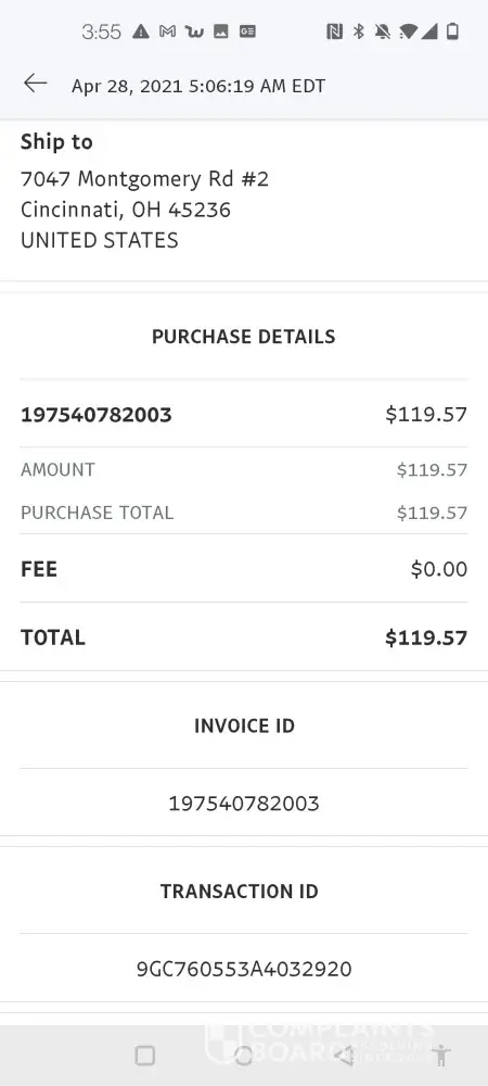 Verified customer This complaint was posted by a verified customer. Learn more