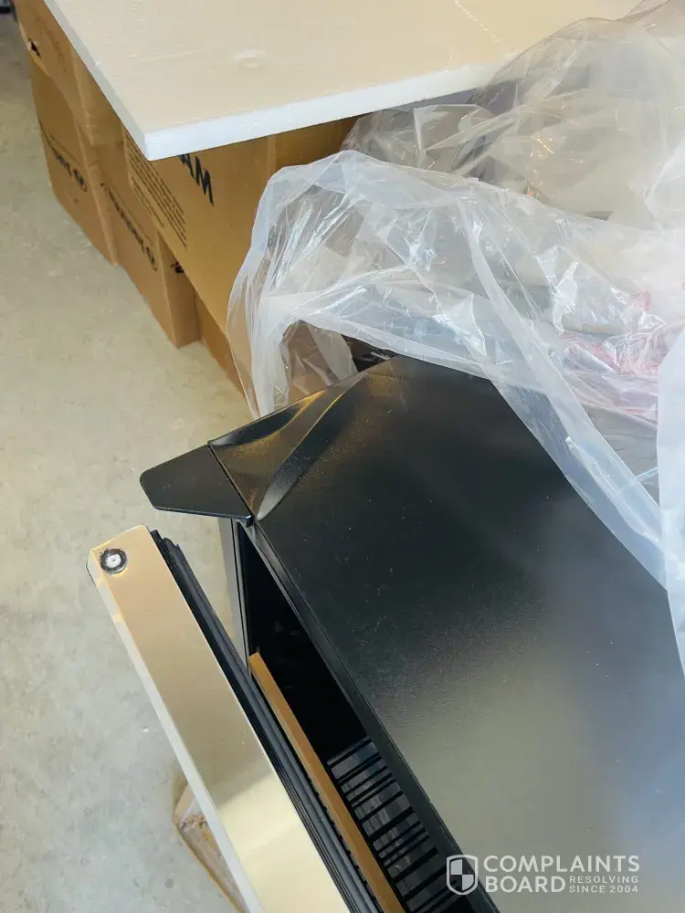 The delivery and installation were both very unprofessional and most probably caused all the damage above. Both crews did not have the right equipment to move such a heavy appliance so brut force was used which simply wasn't right for such an expensive appliance.
