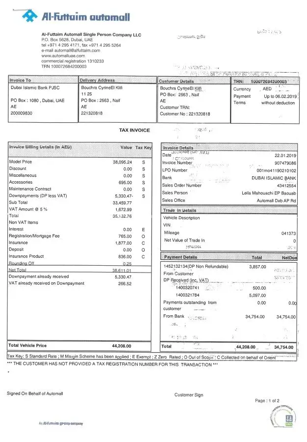Al Futtaim Group My Vehicle purchased from Automall DIP
