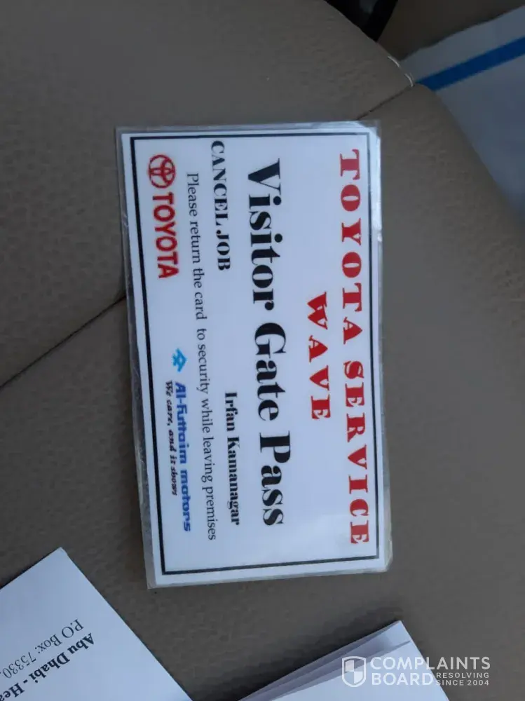 on 10.09.2019, we took our Toyota (office car) to the regular service check-up : at the time, the car had no issues at all, it was just another regular car service check-up.