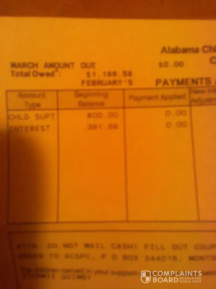 We paid off our Child Support on 03/20/09 we have the receipt showing we don't owe $0.00 they failed to stop sending the statements after we paid it off. Even on the statements they send it says amount Due is $0.00 and an amount owed is now after five years has got up to $1, 199.58 we haven't been paying it because we don't owe it.how can we owe if nothing...