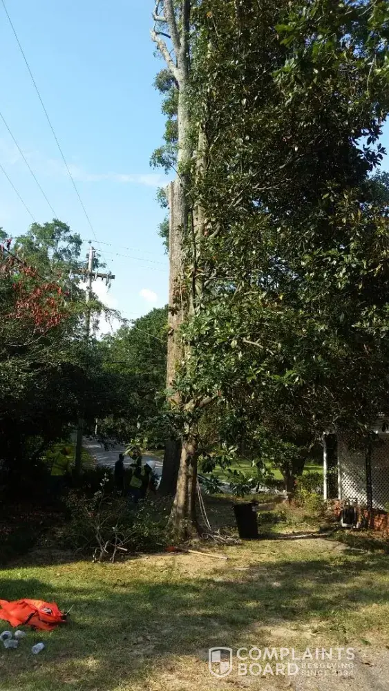 My home at 300 Bromley Place has recently been renovated and is listed for sale by Robert Bros. Realty. I was not at the premises when the Alabama Power Co. tree crew came to my home on October 4, 2019. My painter was at the premises and they informed him they were going to trim the trees. My painter called me and informed me they were going to trim limbs from the side by the wires that runalong my property line. This is a yearly occurance and it did not occur to me that every limb from one side of my beautiful Magnolia tree and a very tall Oak tree would be removed all the way to the trunk. When I arrived at the property the painter had left and the crew had almost completed this unthinkable and dispicable damage to my property. The man in charge who spoke broken english said he was told to remove limbs 15 feet from the power pole which he said would be all the way to the trunk.