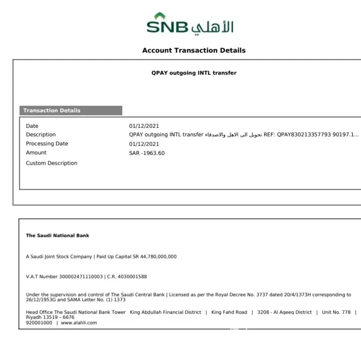 As I send money 3500 SAR to Pakistan on IBAN account number .But still i have not received money in Pakistani have put a complaint in the same quick pay bank but the issue is not yet solved .