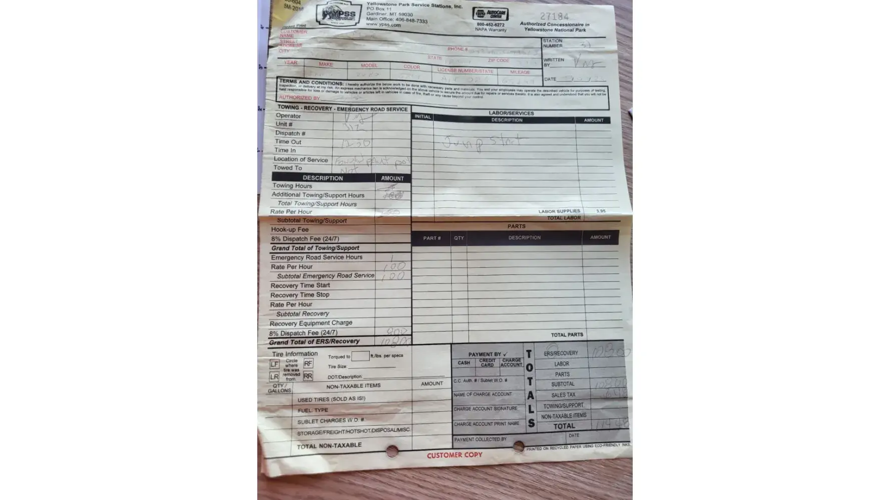 Hi, we rent a car with Alamo at Denver airport in july. We took all the insurance needed for a long trip. We had a break down in Yellowstone National Park with the car. There was no network so that it was impossible to use our phone to contact Alamo assistance. The Rangers told that they had to call their tow truck for a recovery. It appeared that we needed a jump start. We had to pay about 105 dollars with our credit card. We report traight away to Alamo via the number provided. It consisted in sending a text message. We did it twice and nobody answered. We had to report this incident to someone at the drop off at the airport. His name is Tyree Mayfield, phone number [protected]. We gave him the document showing that we paid this amount. He said that he send it to your back office for the refund. So far, we did have anything back. We still expect the refund from Alamo. We travel very often in the US and had been a solid client of Alamo. Thank your for considering this email.