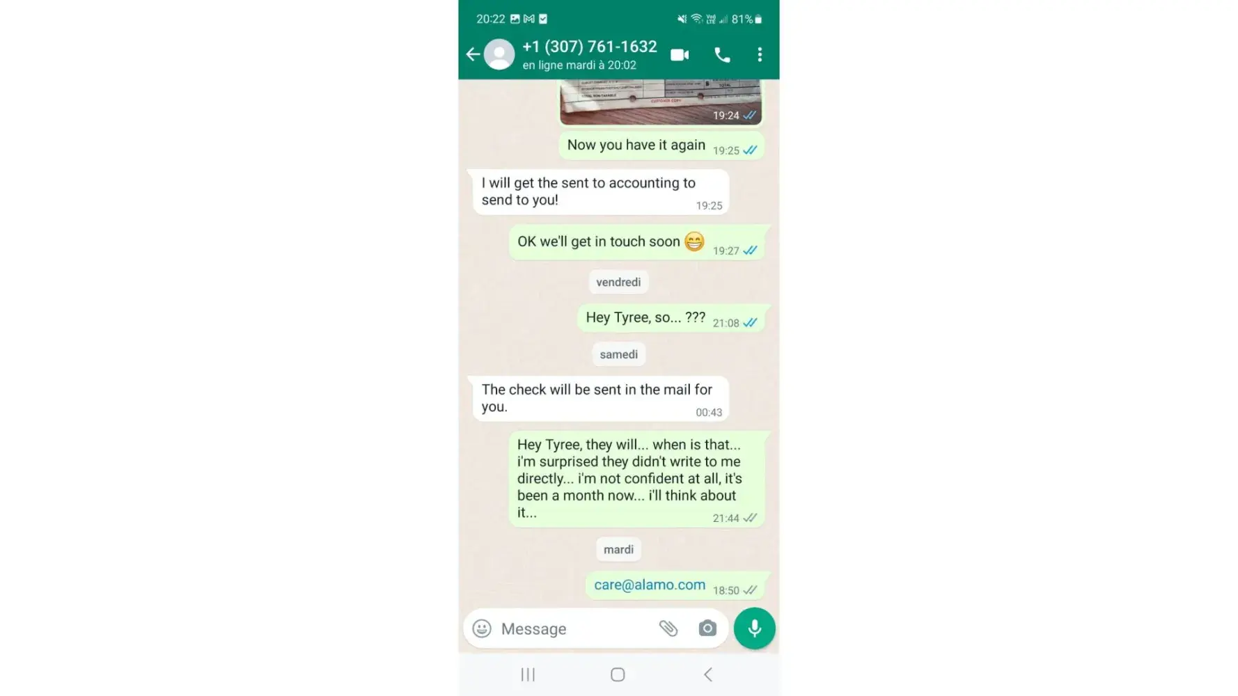My complaint has been marked as resolved. But i did't have any news from Alamo. What is it so long ?