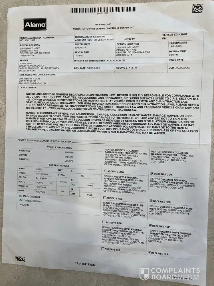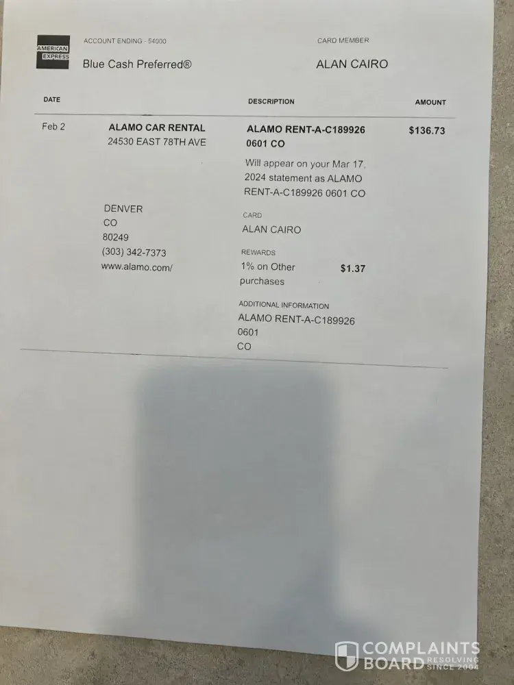 Bottom line, Alamo knows if they drag out the process, the Complaints Board will automatically show the issue is resolved to the customers satisfaction.