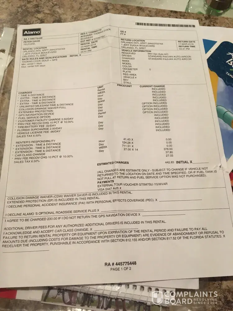 Alamo Rent A Car obligatory extra charges when pick-up scam