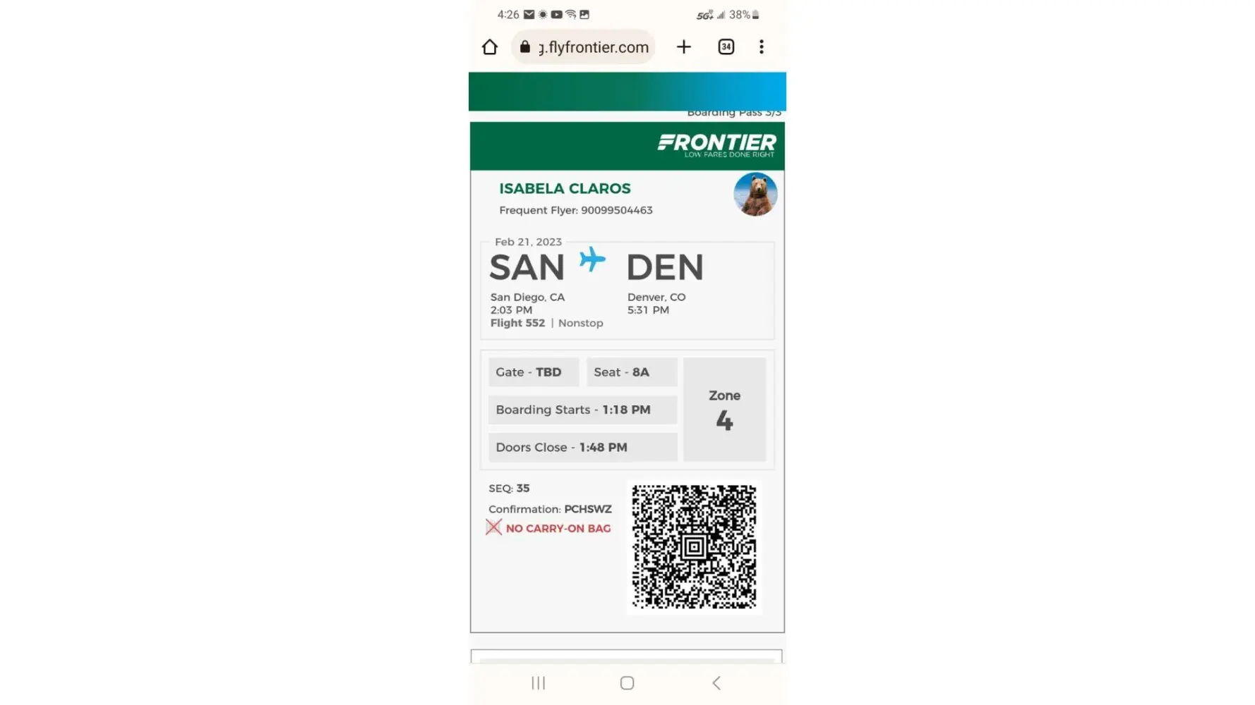 i attached the receipt and the airline tickets from my daughter and my self from san diego.