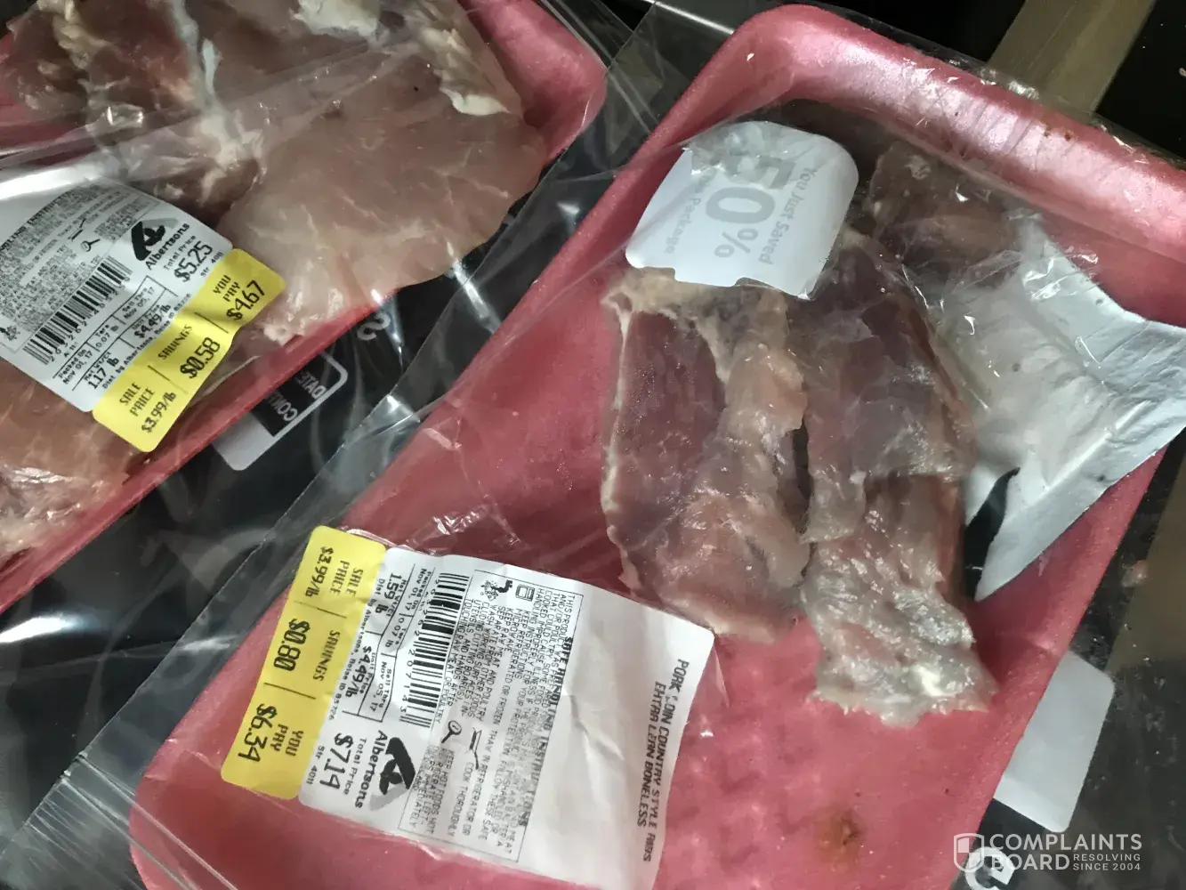 Albertsons must not care about the safety of the customers sold us rotten meat we could of went to the hospital if my family had ate this! An this was bought today 11/05/17 this is a serious issue that need to be brought up to the meat department! And they seemed not to care basically saying we need to take are chances when buying marked down meat