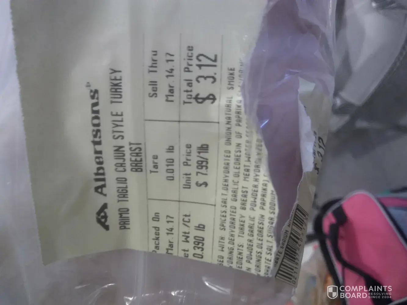 I purchased the deli meat on March 14, 2017. I packed the meat for lunch yesterday and this morning. It has a funny smell. I go to inspect the meat and there are yellow streaks on it. I checked the sell by date and it is the same as the purchased date.