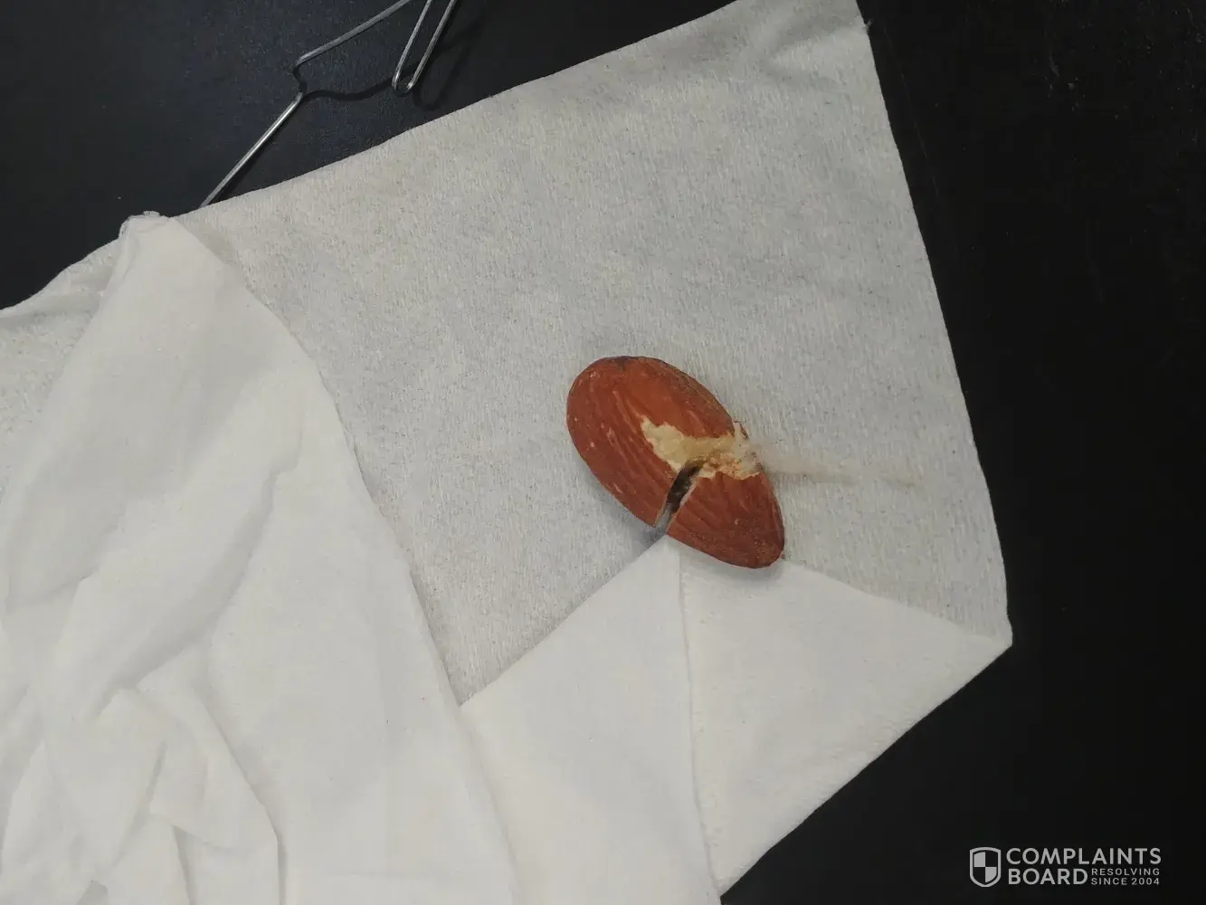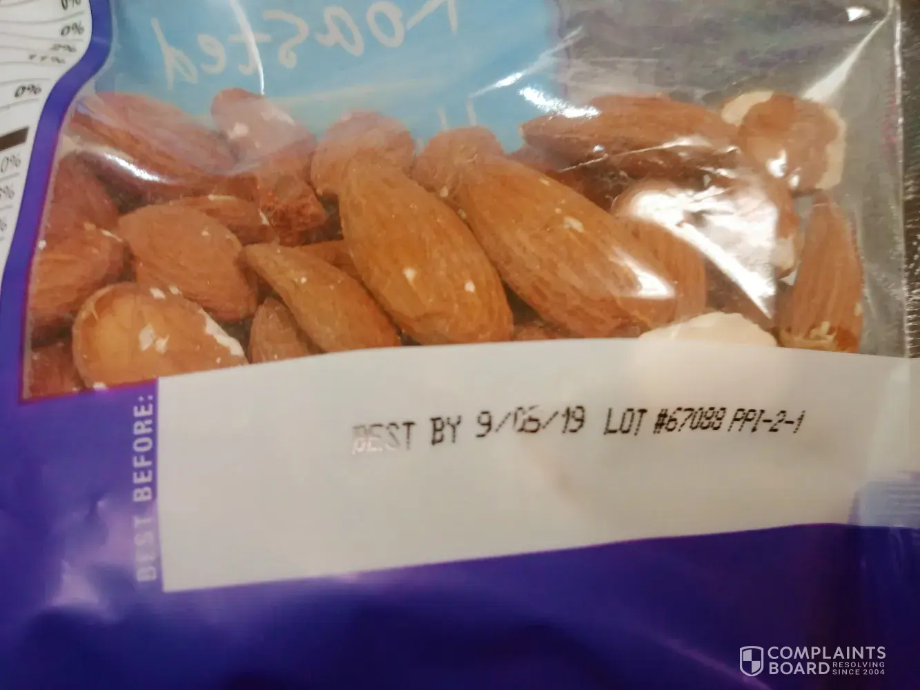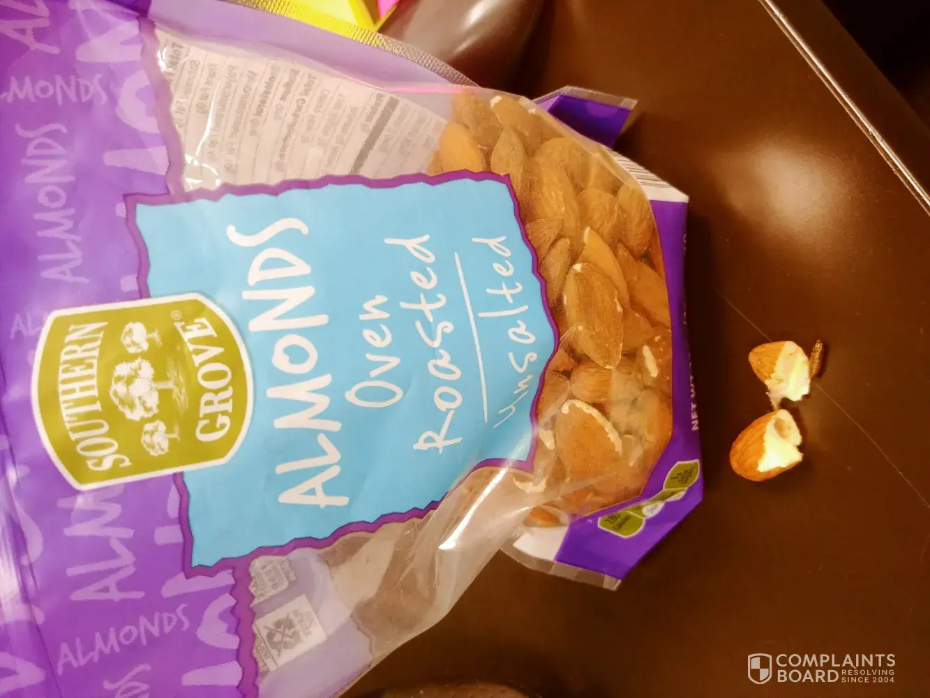Hello I purchased some Almonds Oven Roasted Unsalted Southern Grove Barcode sku # [protected] Store (?) not sure if its the location of the product but is the last 6 digits on the barcode 04677 Best Buy 09/05/19 Lot 67088 PPI-2-1 I found a bug inside an almond and I'm concerned I are out of a contaminated bag. Please advise asap.