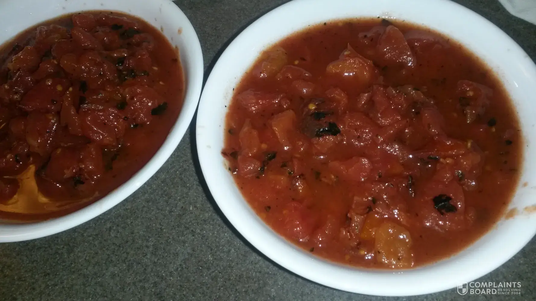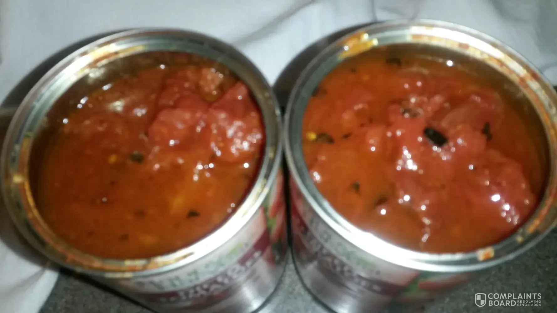 I bought 2 14.5 oz cans of diced tomatoes about 2 weeks ago. Yesterday I was making spaghetti. I opened up the first can to find burnt pieces floating on top and all through out the can. The 2nd can was the same way. I am so pissed, I had to go to the store and buy more to finish my dinner. I have use this and other Happy Harvest products for yeas a have...