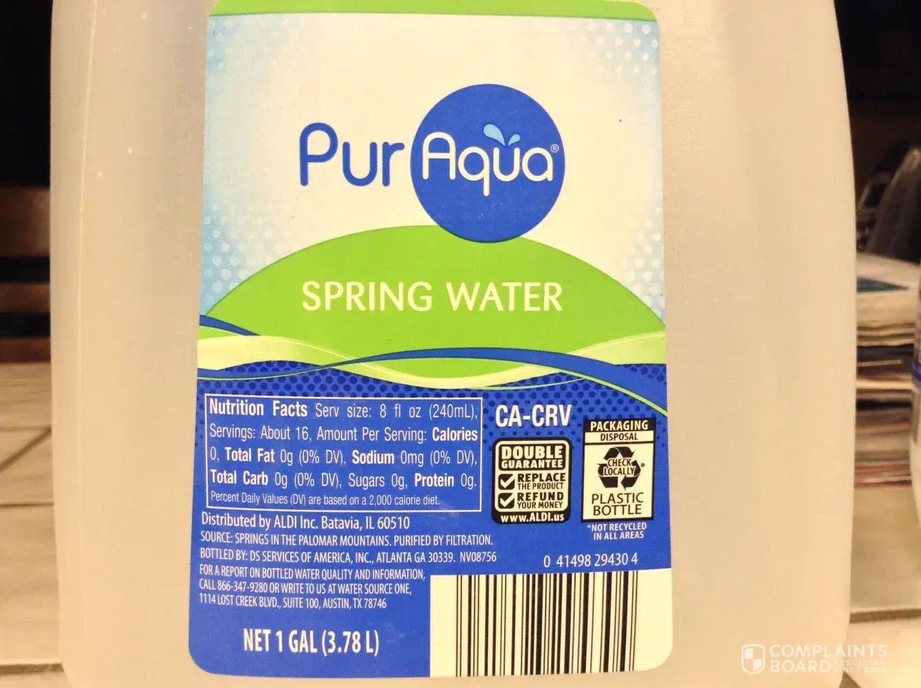 James, my husband noticed this "junk" today in serveral gallon bottles of the Aldi Spring Water. We still had some of them left over from earlier this year. I had made coffee with one of the bottles this morning and didn't notice the black flakes! It was almost half empty, when he noticed it this evening. So I grabbed a new - still sealed - gallon bottle and the black stuff was floating in there too. The third bottle the same. I will pour the water in my plants outside. The black stuff almost looks like floating mucus or slime. Very gross :( Now I think that this is the reason why it was pulled out of the shelfs at our local Aldi! :/