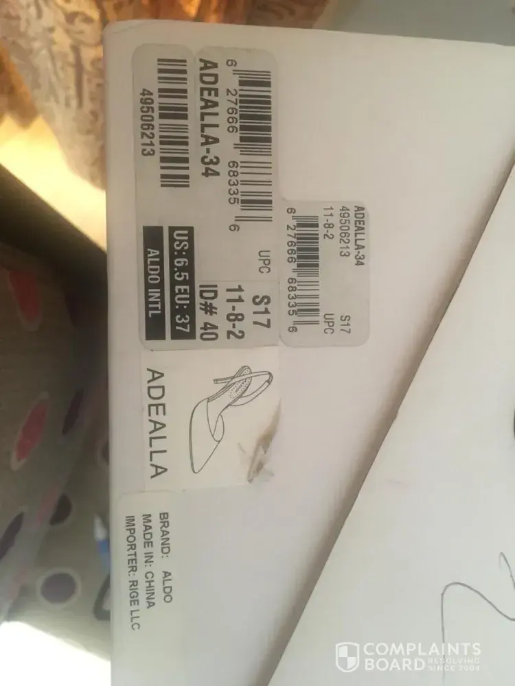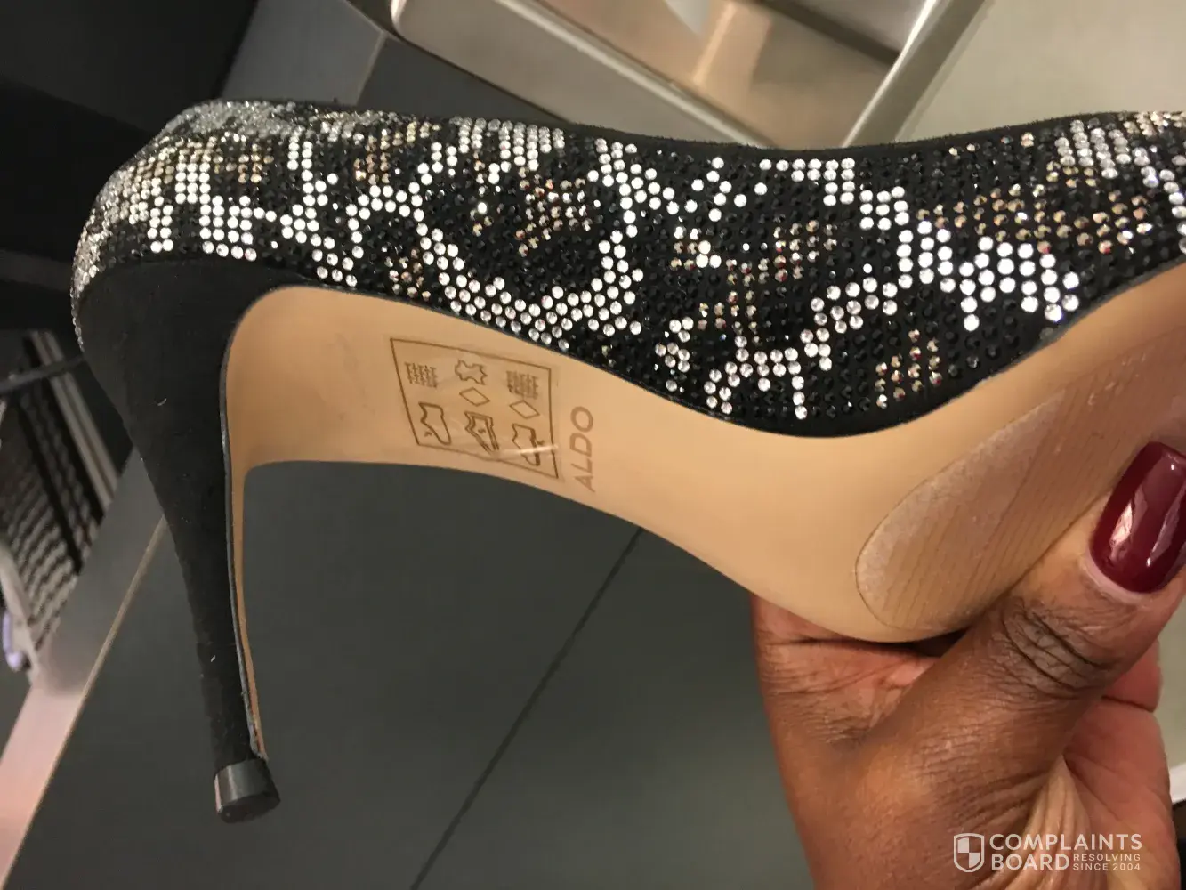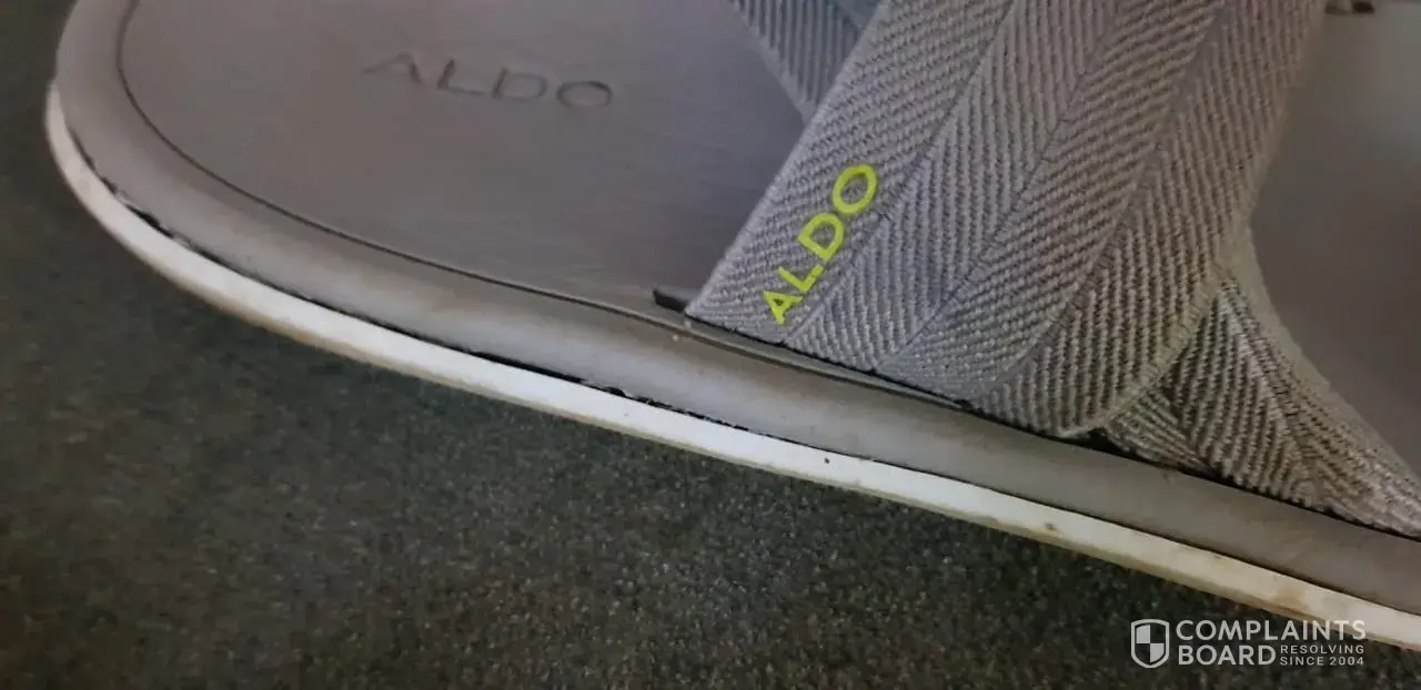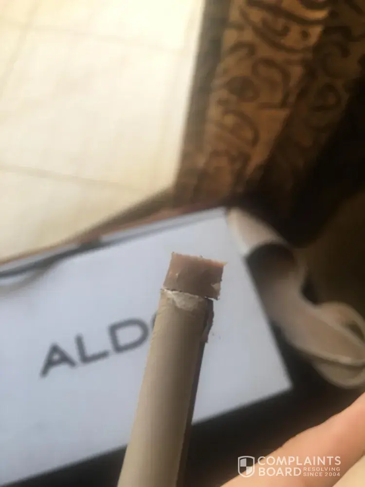 On April 2018, I bought beige shoes and attached pictures and after less than a month the small part below the shoe was broken and I sent it to the Aldo store to be repaired with Aldo original parts, after using it only once it wasn't comfortable and the bottom of the plastic was changed for the second time and The shoe became completely uncomfortable and Aldo refused to replace it with another, unfortunately another issue happened also in my black sandal after wearing twice I found a cut in the buckle as shown in the attached pictures.